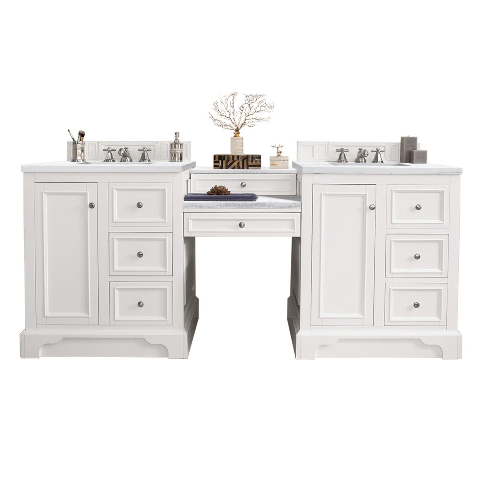 De Soto 82" Double Vanity Set, Bright White w/ 3 CM Carrara Marble Top