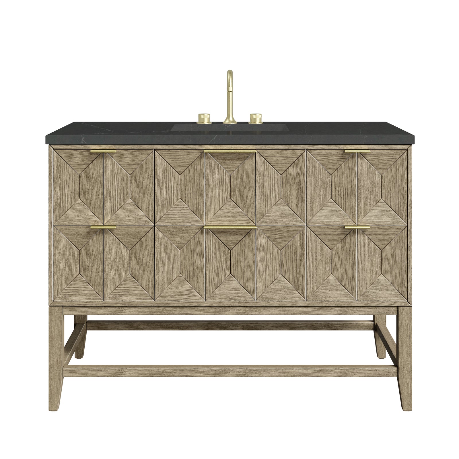 Emmeline 48" Single Vanity, Pebble Oak w/ 3 CM Charcoal Soapstone Silestone Top