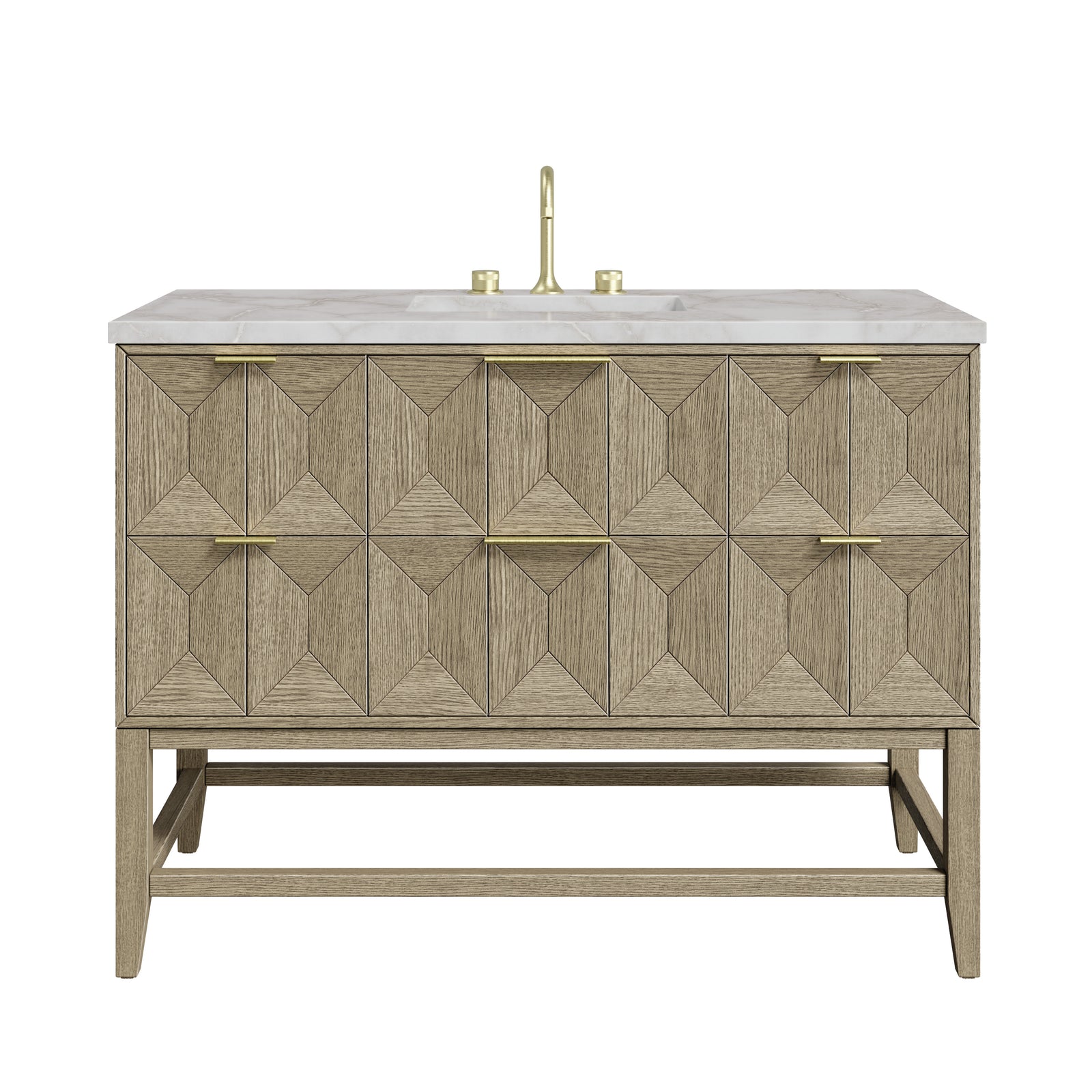 Emmeline 48" Single Vanity, Pebble Oak w/ 3 CM Eternal Marfil Silestone Top