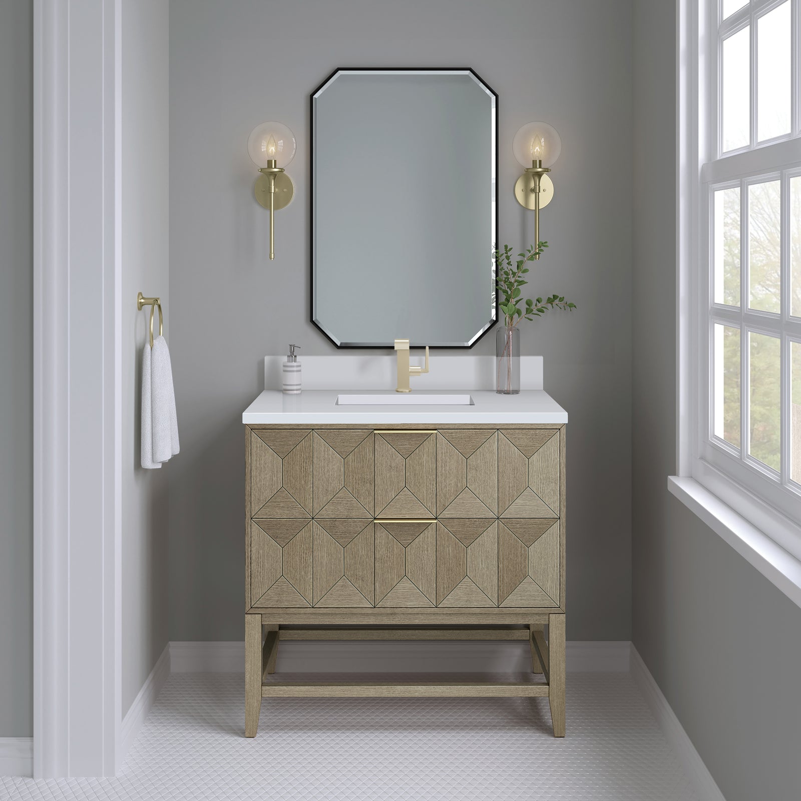 Emmeline 36" Single Vanity, Pebble Oak w/ Single Hole 3 CM White Zeus Top & Backsplash