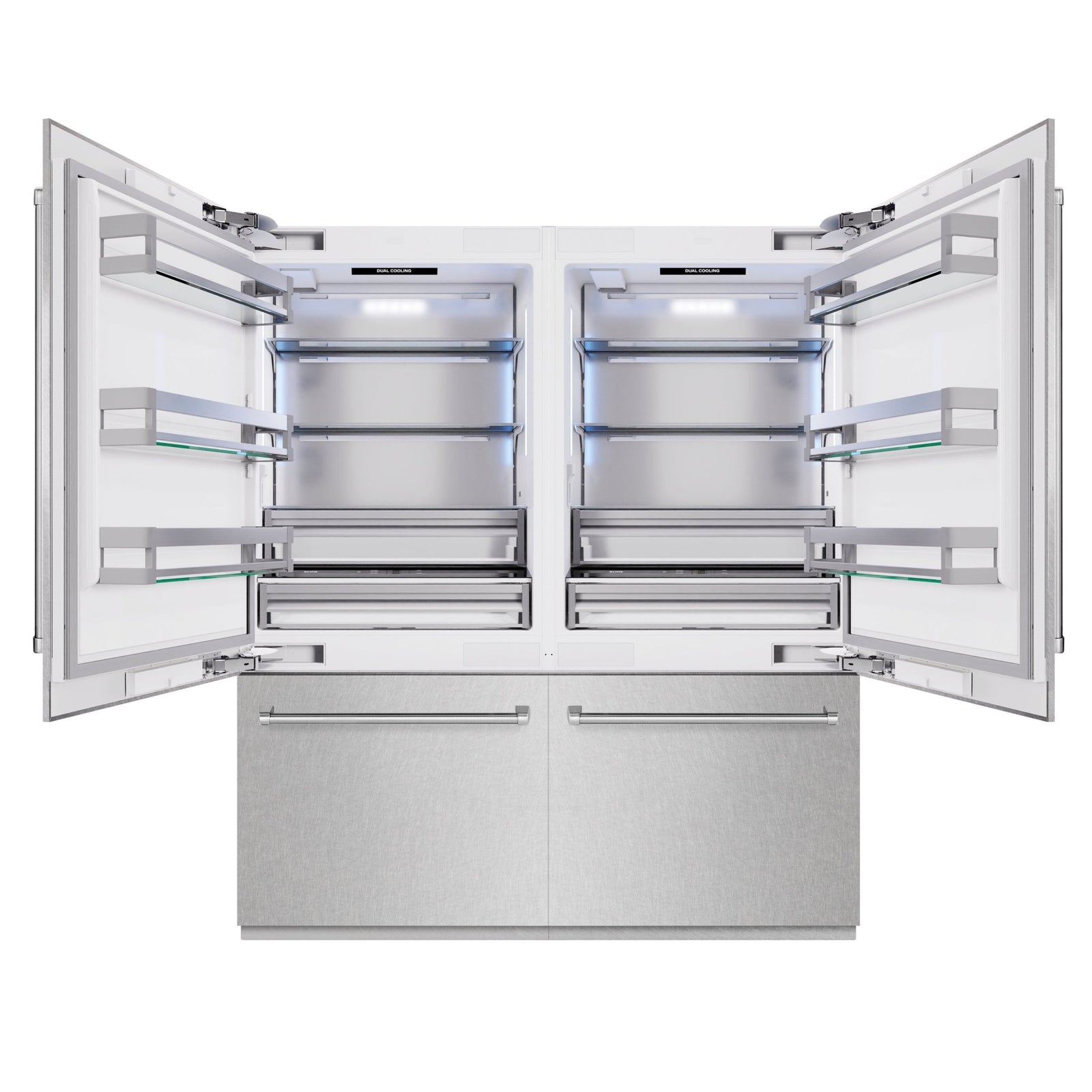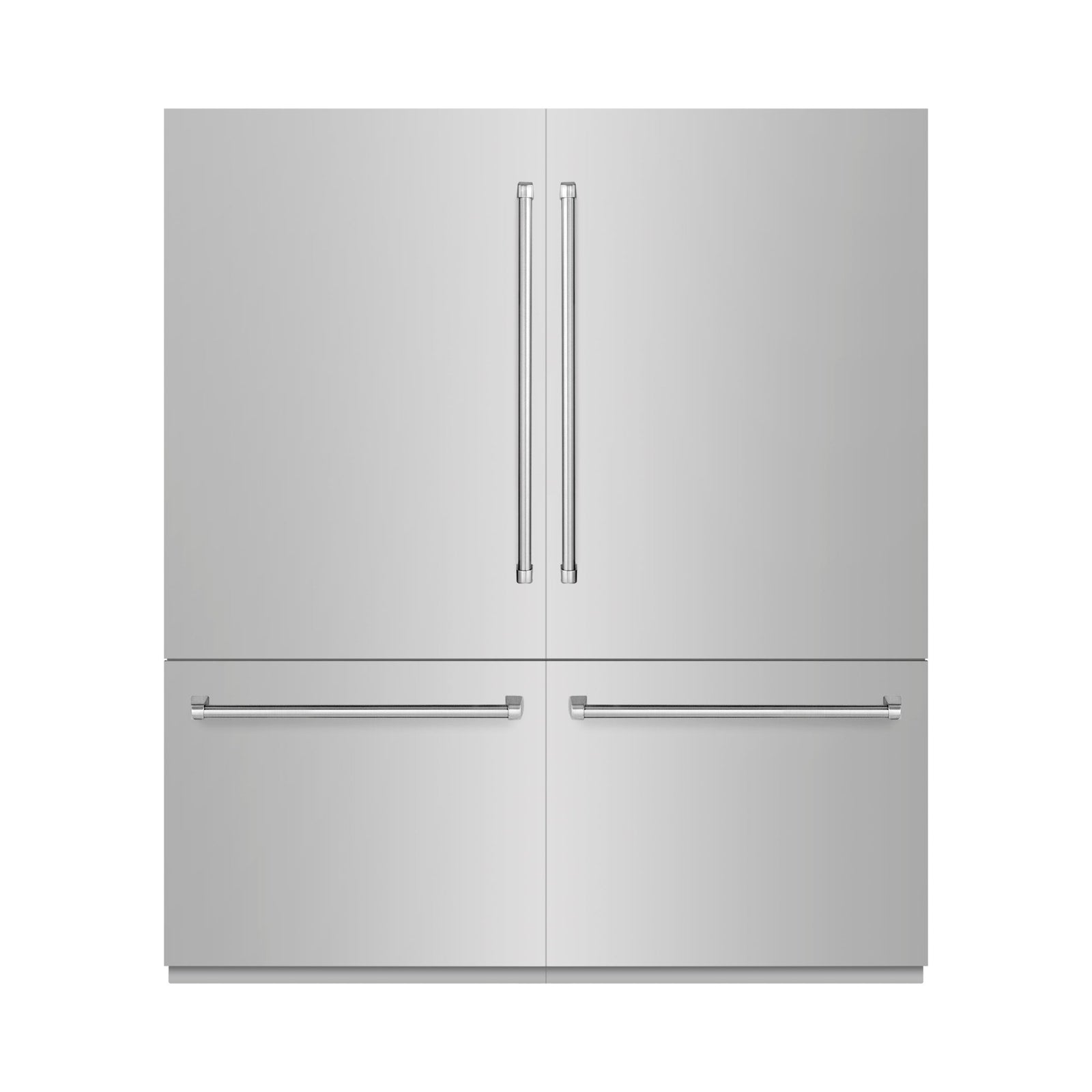 ZLINE 72 in. 39.6 cu. ft. French Door Built-In Bottom Freezer Refrigerator with Water Dispensers and Ice Makers in Satin Stainless Steel (RBIT-SN-72)