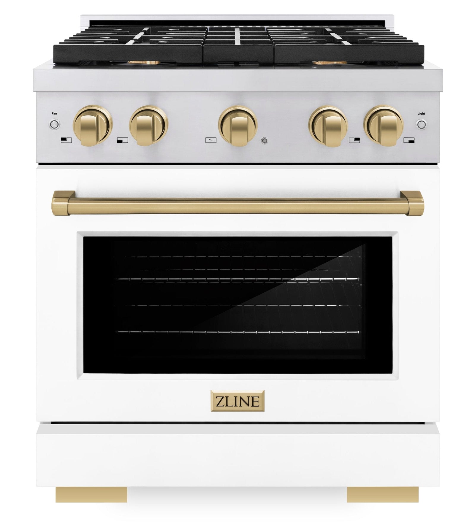 ZLINE Autograph 30" 4.2 cu. ft. Paramount Gas Range with Convection Gas Oven in Stainless Steel with White Matte Door and Gold Accents, SGRZ-WM-30-G