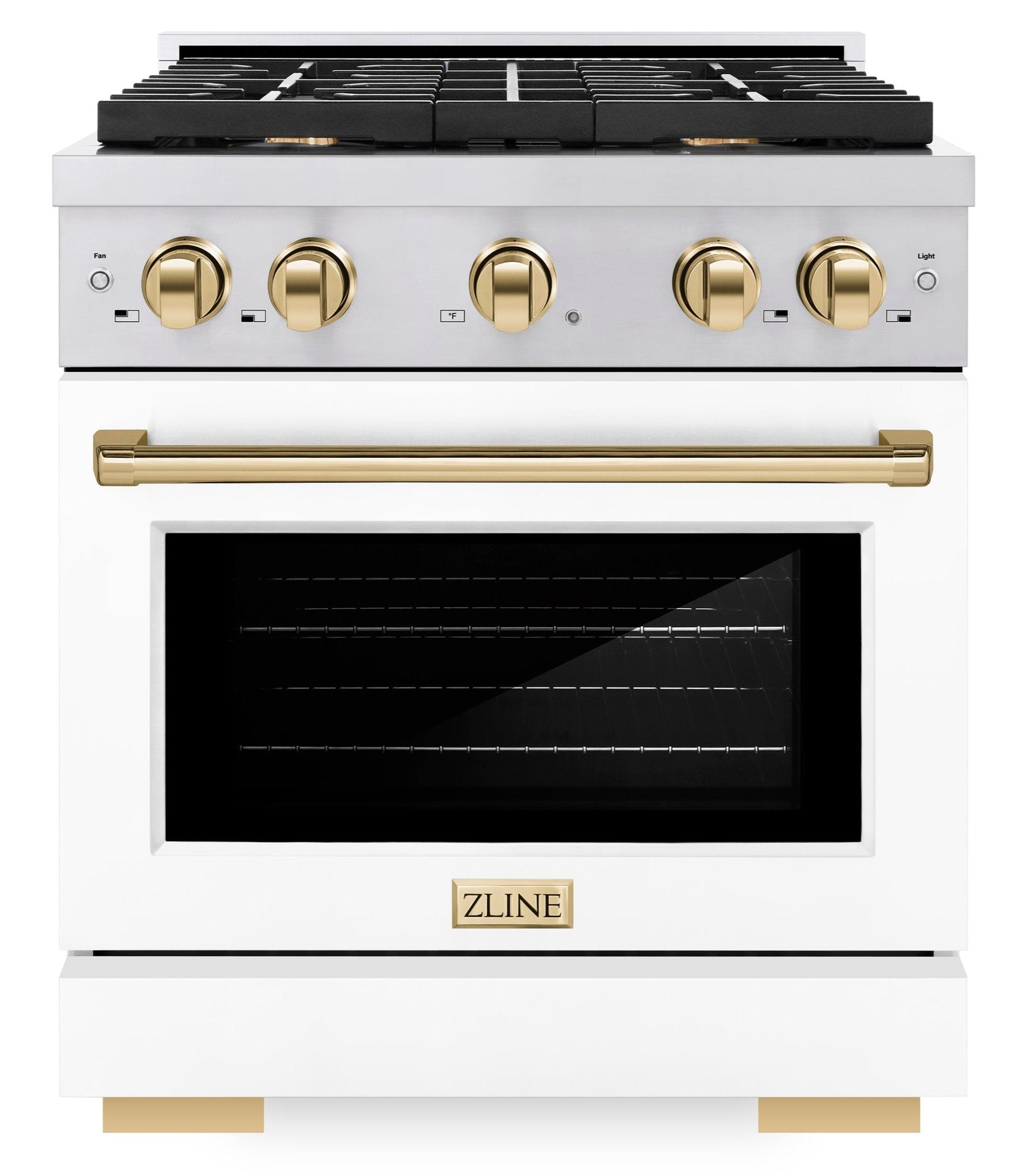 ZLINE Autograph 30" 4.2 cu. ft. Paramount Dual Fuel Range with 4 Burners with White Matte Door and Polished Gold Accents, SDRZ-WM-30-G