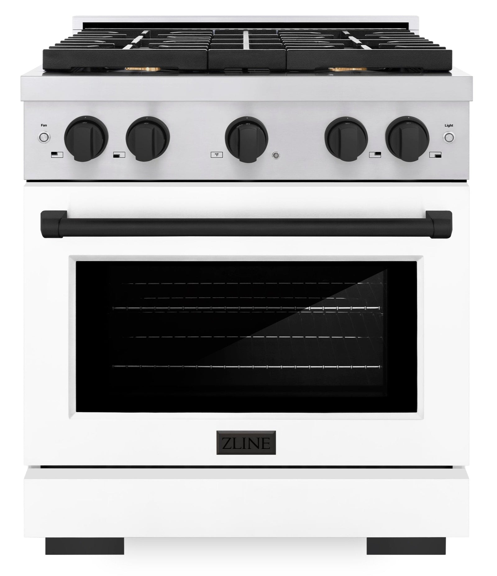 ZLINE Autograph 30" 4.2 cu. ft. Paramount Gas Range with Convection Gas Oven in Stainless Steel with White Matte Door and Matte Black Accents, SGRZ-WM-30-MB