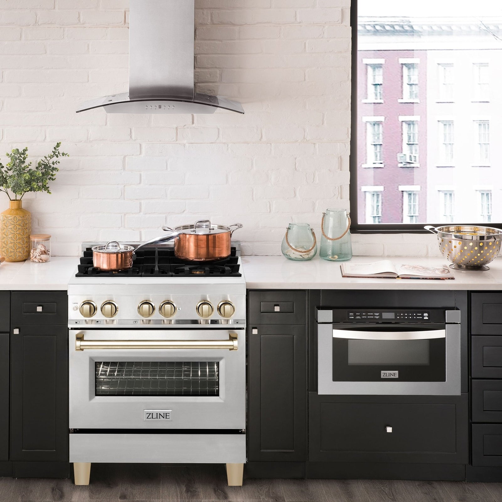 ZLINE Autograph 30" 4.2 cu. ft. Paramount Dual Fuel Range with 4 Burners in Stainless Steel with Champagne Bronze Accents, SDRZ-30-CB