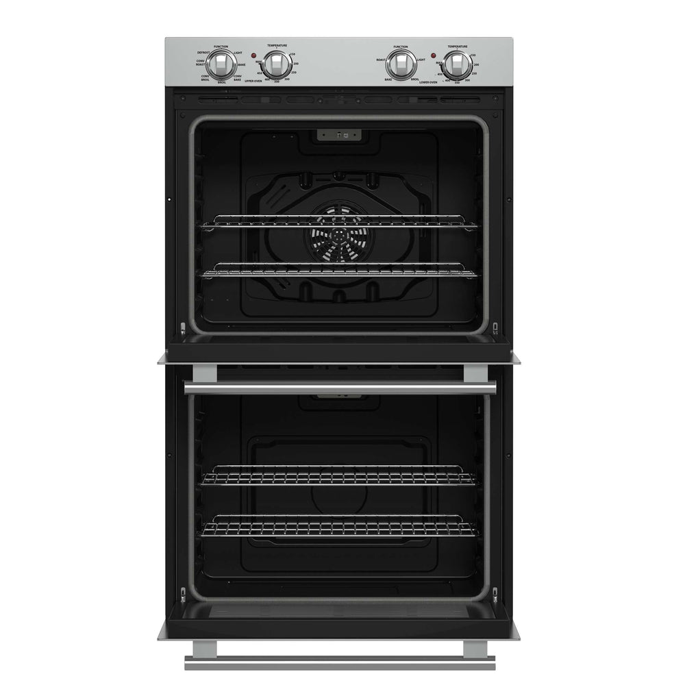 The Forno Villarosa 30 Inch double electric wall oven has a combined capacity of 10 cu. ft. The upper oven is equipped with true european convection fans, maintaining a consistent uniformed oven temperature for evenly cooked meals. Touch controls and LCD display for air-fry function, bake, broil, roast, or warm/proof make it a truly versatile addition to your kitchen. Includes 3 electroplated racks and steam clean pan with delay start/self cleaning.