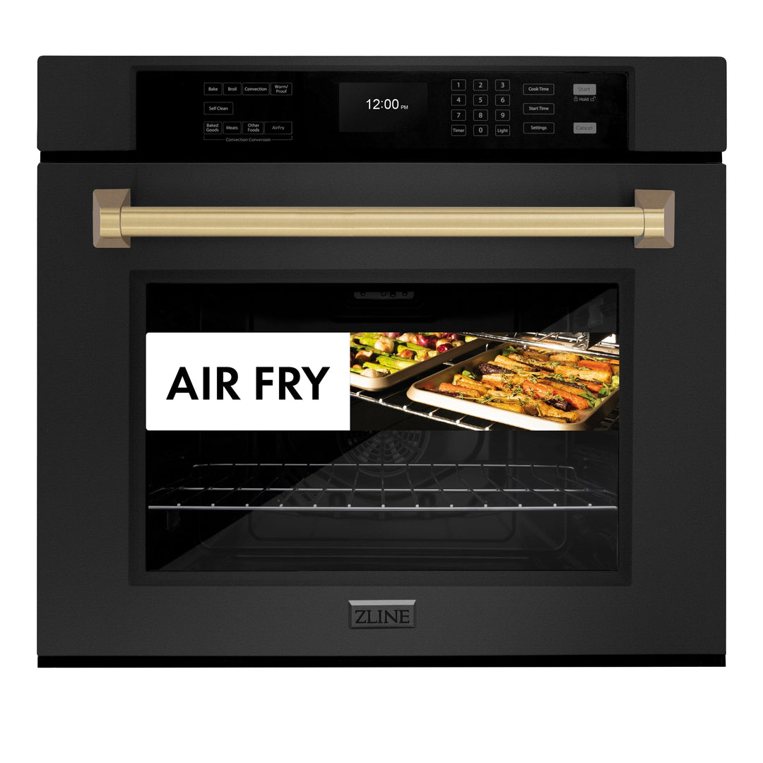 Upgrade your kitchen with the ZLINE 30" Autograph Edition Single Wall Oven, featuring True Convection, Air Fry mode, and Self-Cleaning technology. This luxury oven is designed for modern homes, with added features such as Sabbath Mode, Child Lock, and touchscreen controls for an efficient and enjoyable cooking experience.
