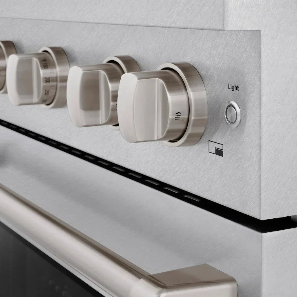 Experience the pinnacle of culinary excellence with the ZLINE 30" Professional Gas Range, featuring a spacious 4.2 cu. ft. convection gas oven and a versatile cooktop with 4 Italian-made burners. Embrace the modern, timeless design of this durable DuraSnow® Stainless Steel range and elevate your cooking skills to new heights.