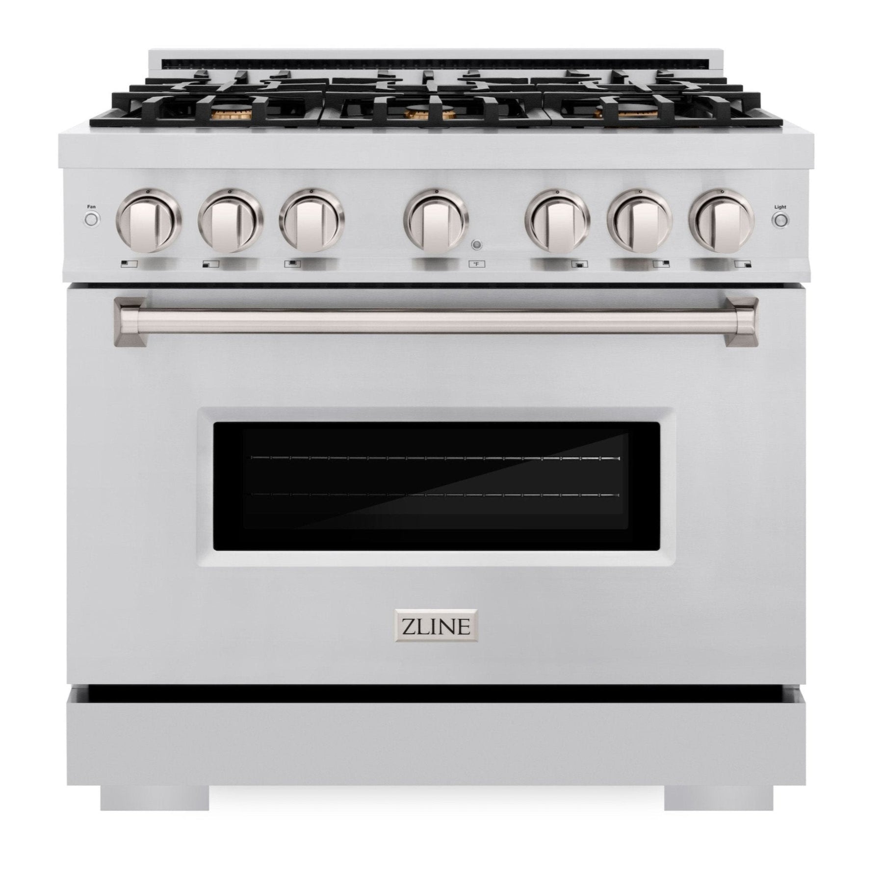 The ZLINE 36" 5.2 cu. ft. Classic Gas Range with Convection Gas Oven in Stainless Steel with 6 Brass Burners (CGR-BR-36) combines the elegance of a hand-finished porcelain gas cooktop with 6 Italian-made brass auto-reignition burners, a gas convection oven with an energy-efficient cooling fan to ensure quiet operation, and a Landscape oven door window design allowing you to master every meal. With a modern, timeless style and refined functionality, ZLINE Classic Gas Ranges are masterfully crafted to deliver an elevated culinary experience.