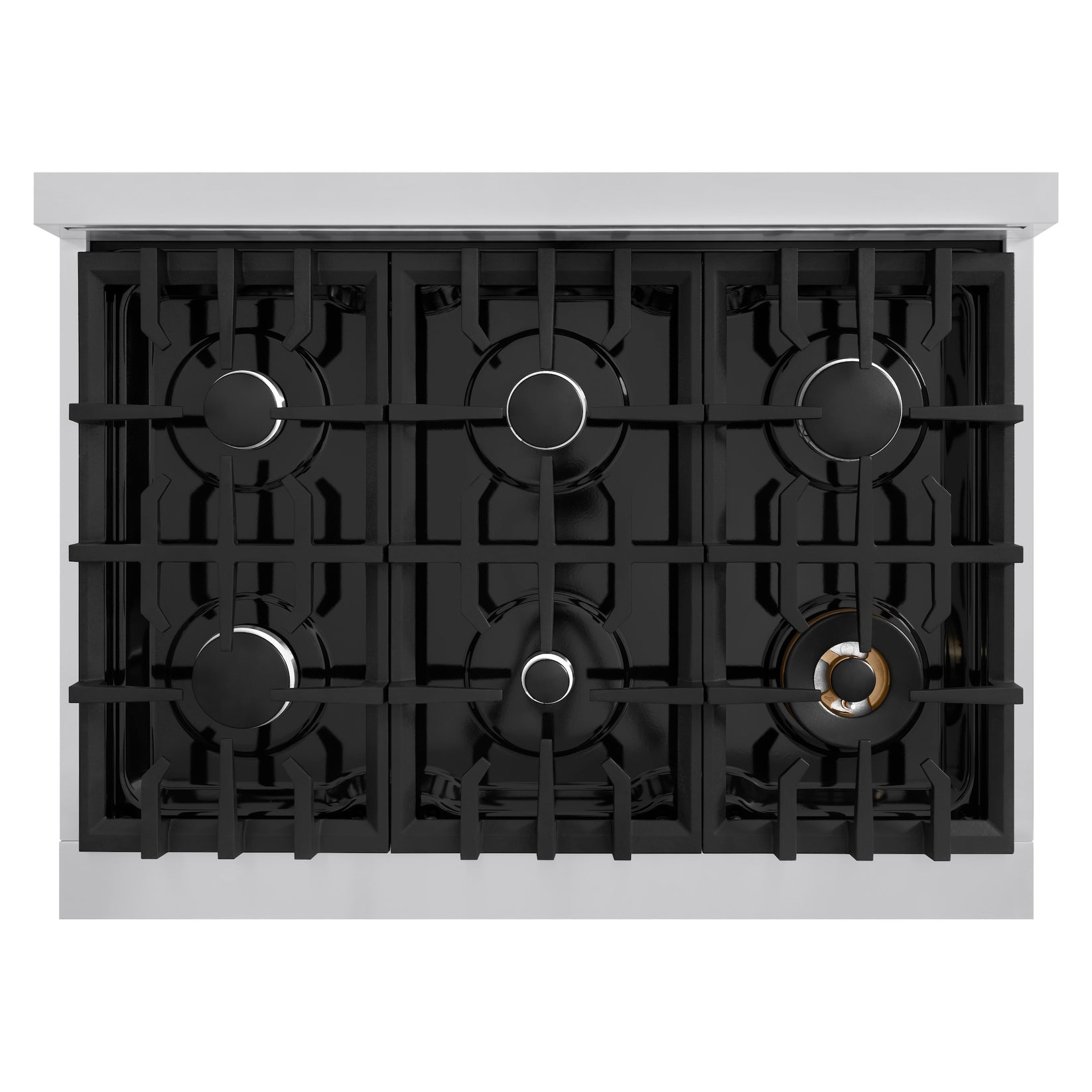 - Italian-Made Auto-Reignition Burners: 6 Italian-made gas burners utilize automatic reignition innovation for improved temperature control and cooktop safety