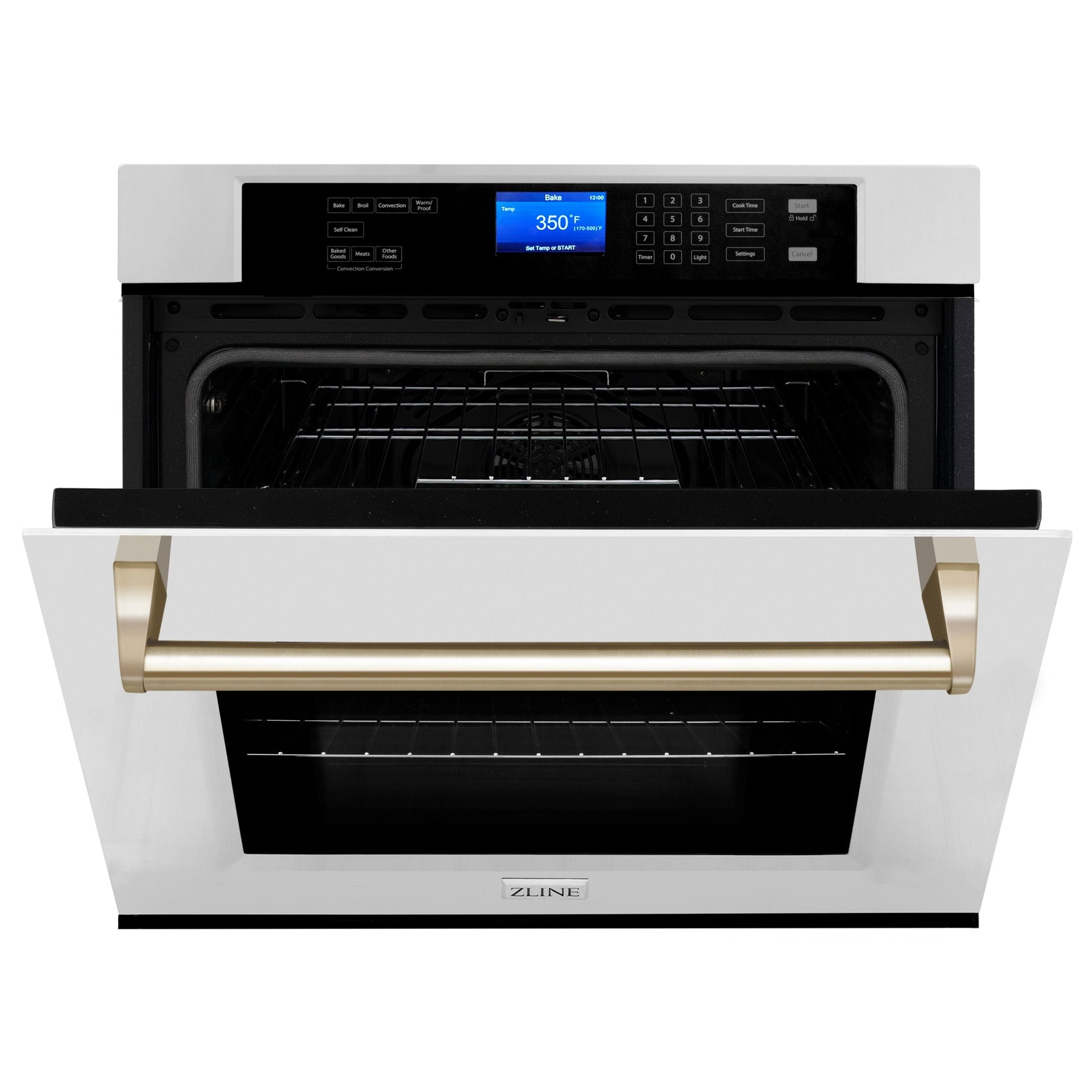 - ZLINE 30 In. Autograph Edition Single Wall Oven with Self Clean and True Convection in Stainless Steel and Gold, AWSZ-30-G