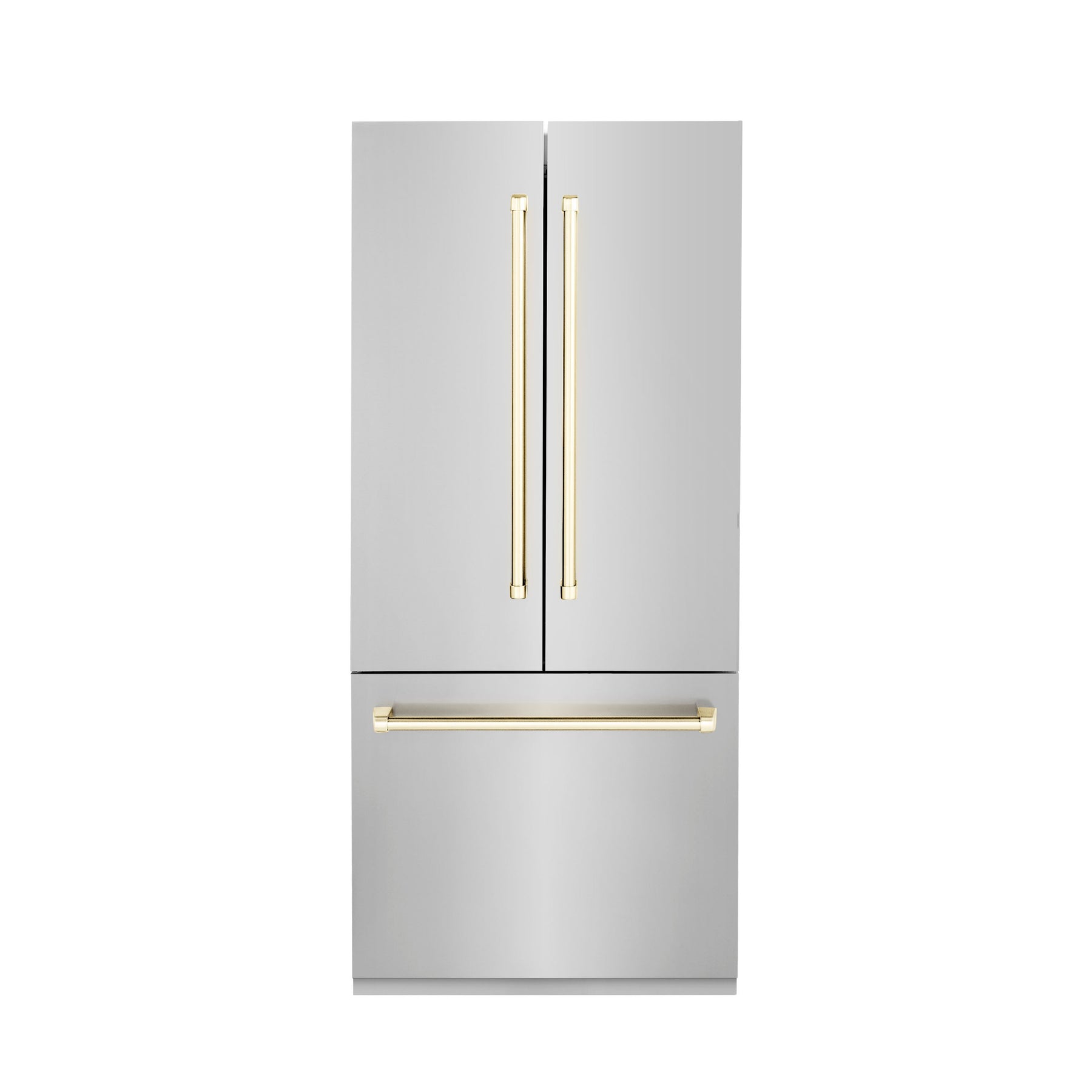 - ZLINE Autograph 36 In. 19.6 cu. ft. Built-In Refrigerator with Water and Ice Dispenser with Gold Accents, RBIVZ-304-36-G