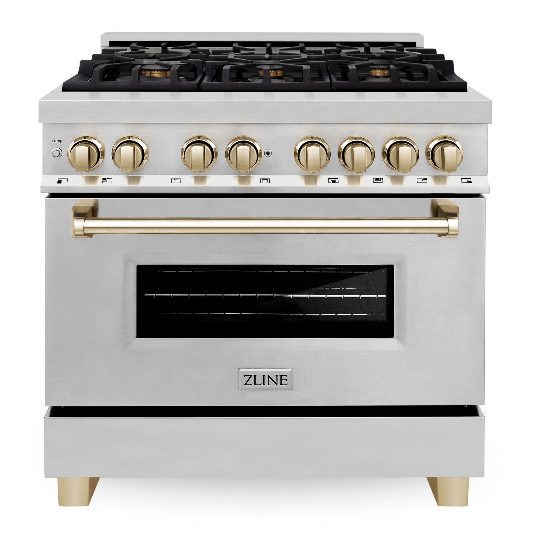 - ZLINE Autograph Edition 36 In. Range with Gas Stove and Electric Oven in Stainless Steel with Gold Accent, RAZ-36-G