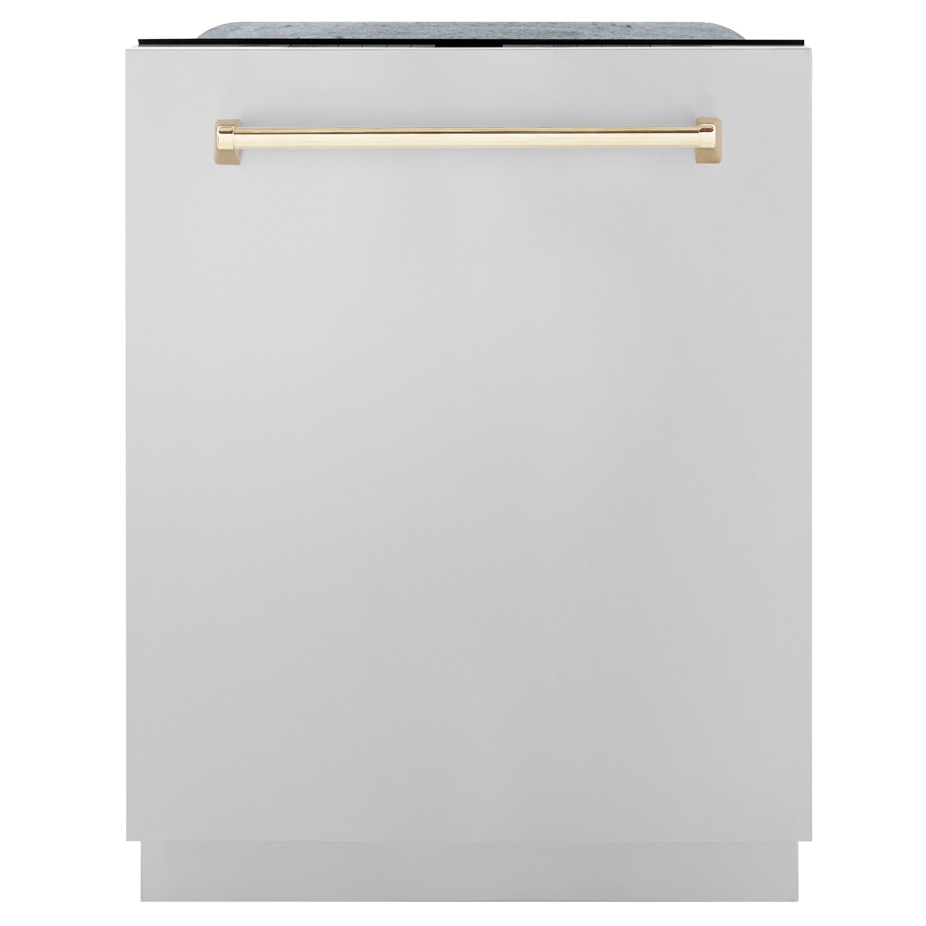 - ZLINE Autograph Edition 24 In. Tall Dishwasher, Touch Control, in Stainless Steel with Gold Handle, DWMTZ-304-24-G