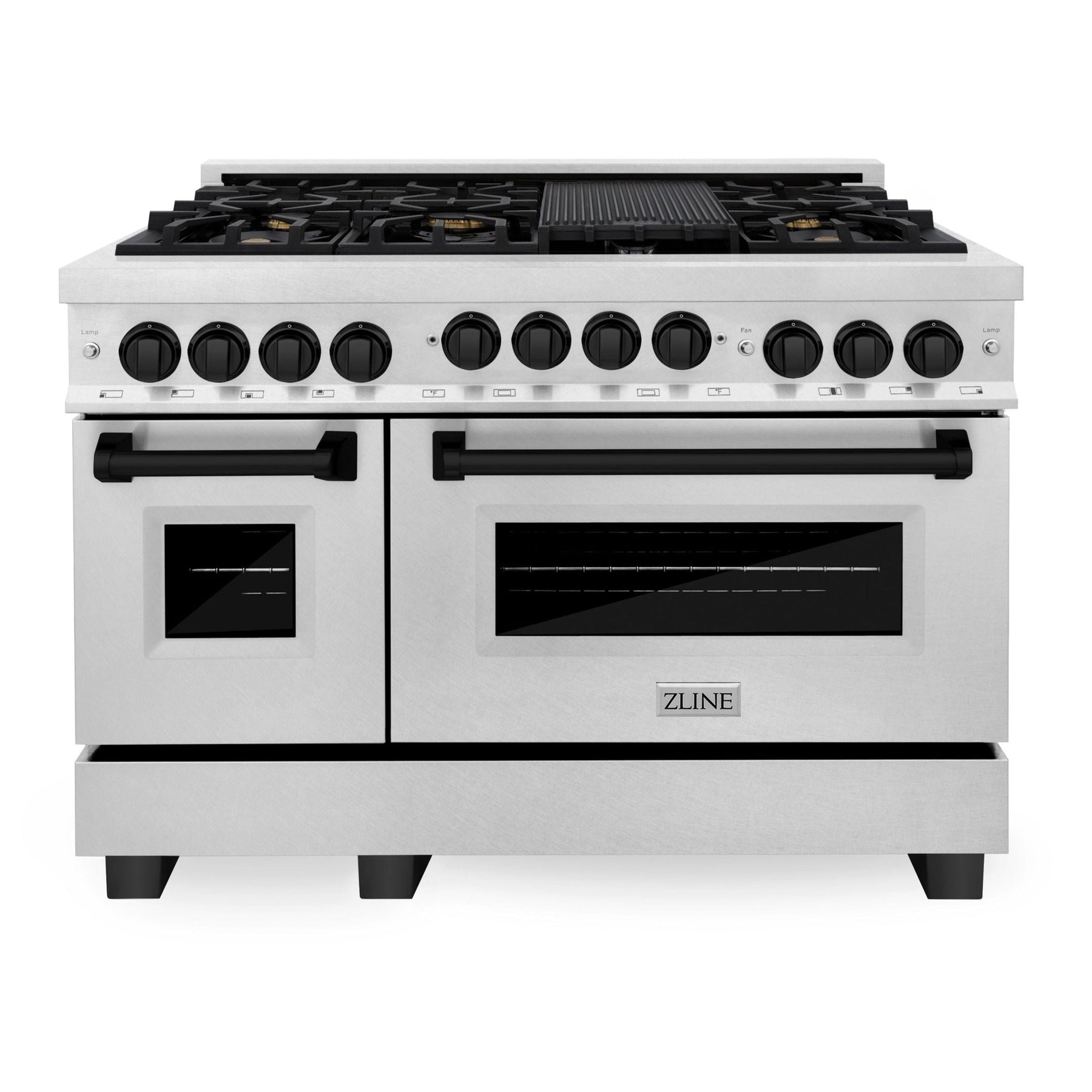 - ZLINE Autograph Edition 48" 6.0 cu. ft. Gas Range in DuraSnow® Stainless Steel with Matte Black Accents, RGSZ-SN-48-MB