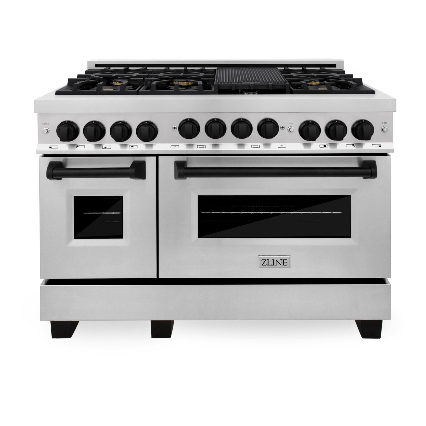 - ZLINE Autograph Edition 48 Inch 6.0 cu. ft. Gas Range in Stainless Steel with Matte Black Accents, RGZ-48-MB