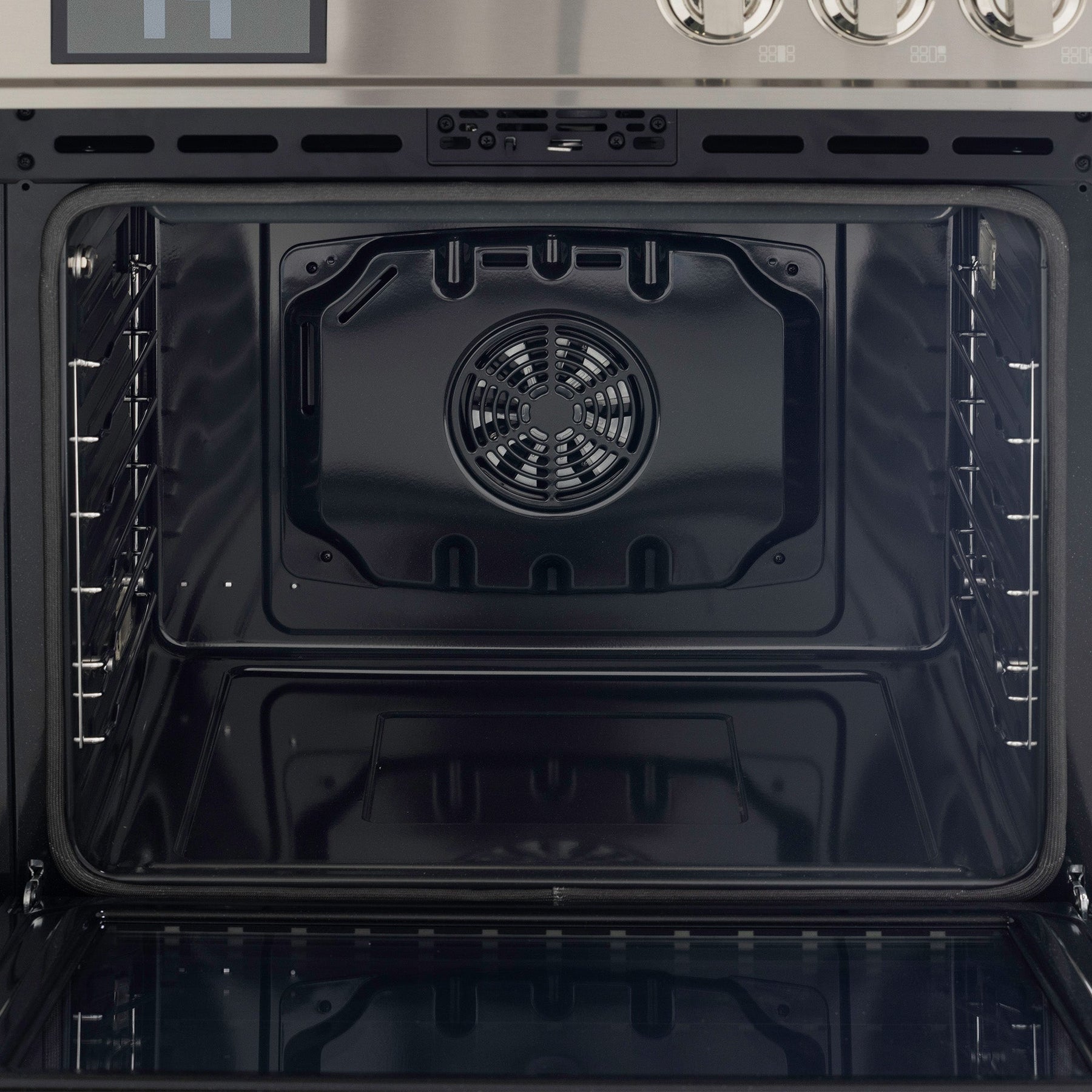 Inside, the true convection oven is engineered for versatility. With built-in Air Fryer, Dehydrator, and Pro Pizza Modes, you can cook everything from crispy fries to authentic New York–style pizza at home. The oven reaches up to 660°F sustained heat, while precision is ensured with the included digital meat probe. Smart WiFi connectivity and over-the-air updates mean your appliance keeps getting better with time — unlocking new features and functions as they’re released.