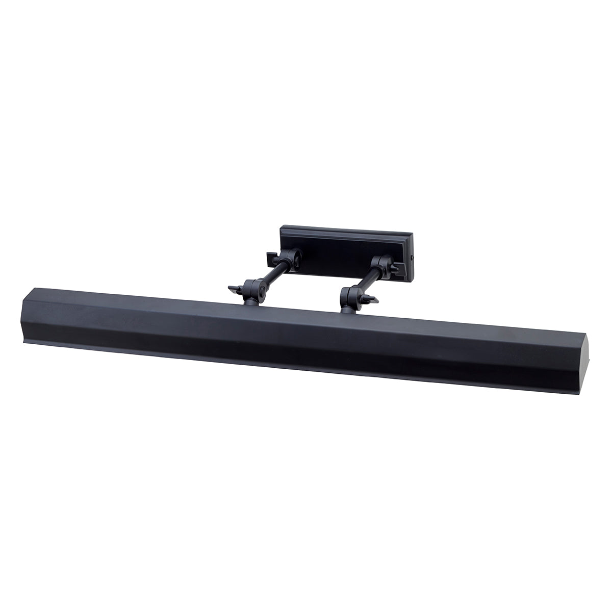 Black picture light is adjustable for tilt of light towards picture. Traditional design with four 40w lights to provide an even, clear illumination.