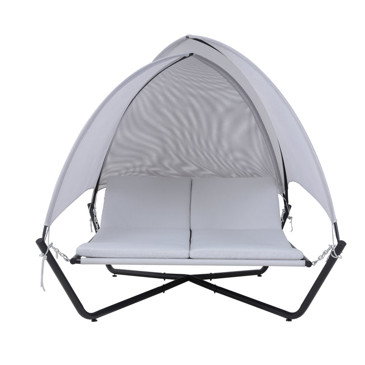 Introducing our Outdoor Hammock Lounge Daybed with Canopy – a blissful and stylish retreat for your outdoor sanctuary. Immerse yourself in the gentle sway of a hammock, protected by a canopy that adds shade and sophistication to your outdoor lounging experience. Whether you're seeking a shaded spot for quiet contemplation or a blissful seat for socializing, this daybed combines the timeless allure of a hammock with the sophistication of a canopy for an elevated outdoor experience.