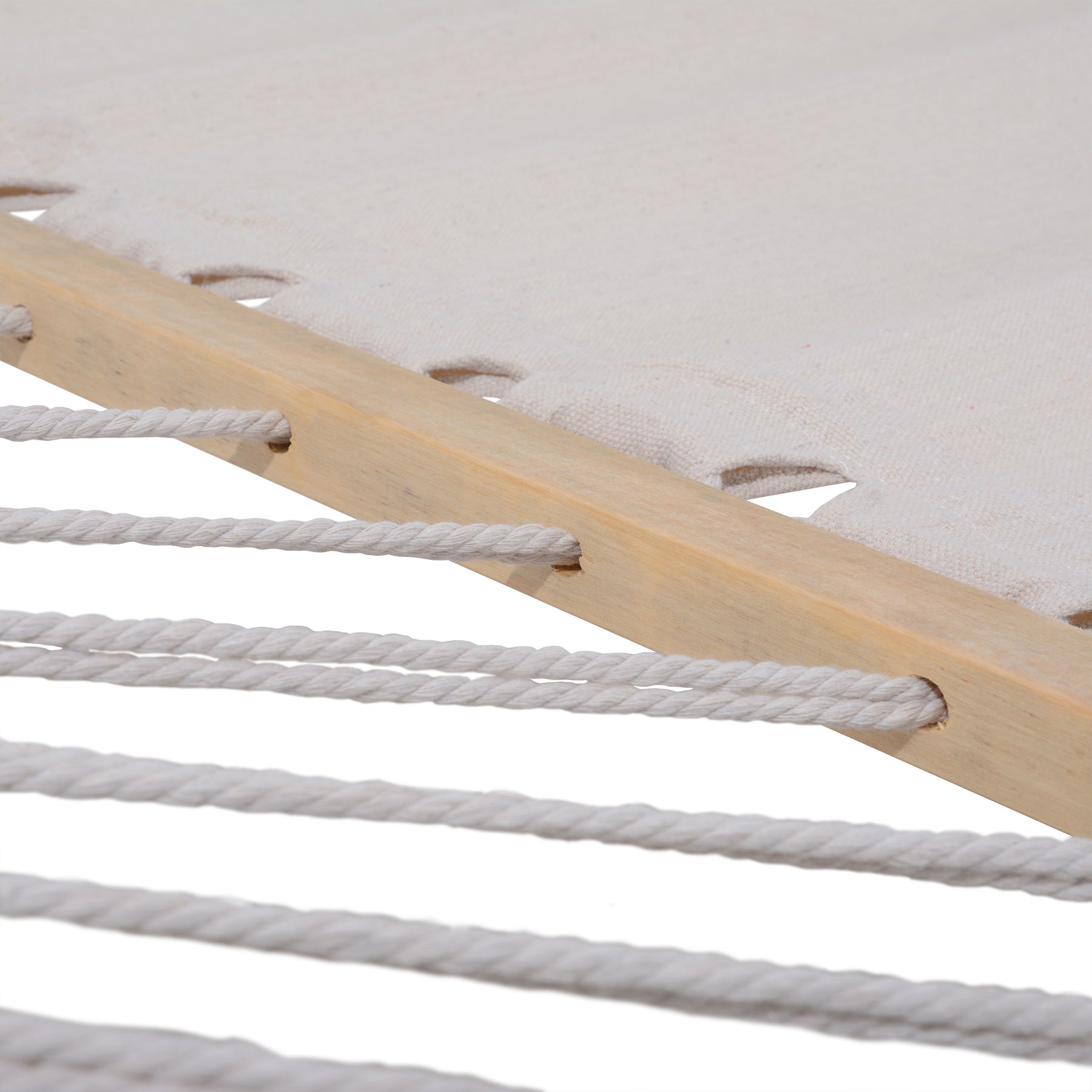 Introducing our Outdoor Wooden Frame Hammock with White Upholstery – a stylish and comfortable retreat for your outdoor sanctuary. Immerse yourself in the gentle sway of a hammock, supported by a wooden frame and adorned with chic black upholstery. Whether you're seeking a solitary spot for relaxation or a chic seat for socializing, this hammock combines the timeless allure of wood with the sophistication of black upholstery for an elevated outdoor experience and transform your outdoor area into a haven of comfort and style.