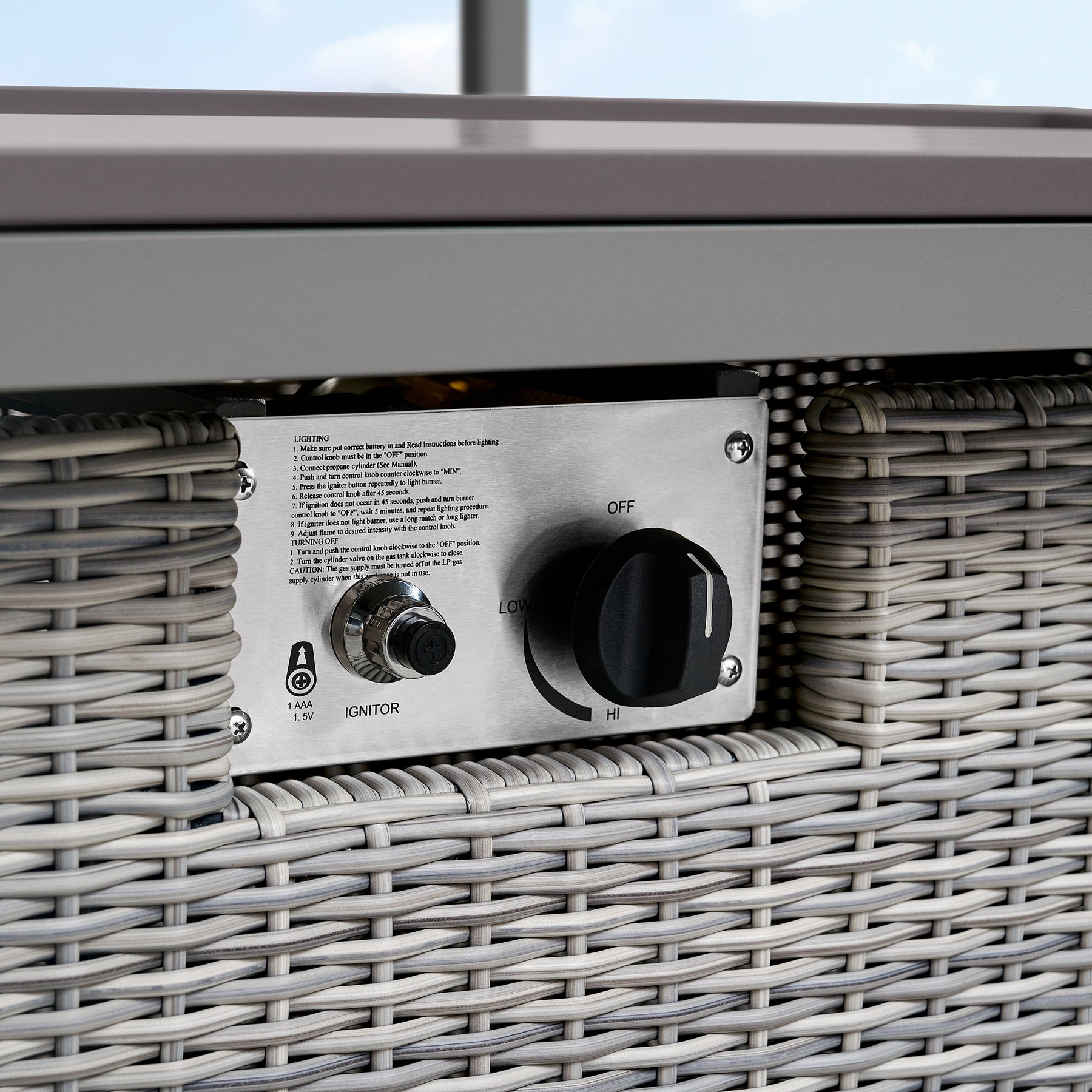 Introducing the Deko Living Tricarico Outdoor Conversation Set with 50,000 BTU Propane Firepit Table, meticulously designed to elevate your outdoor living experience. Crafted with the finest materials, this set combines comfort, functionality, durability and style. This set is sure to become the focal point of your outdoor gatherings and leisure time… enhance your outdoor living space and create a welcoming environment for relaxation and entertainment for hosting family and friends in a relaxing garden atmosphere.