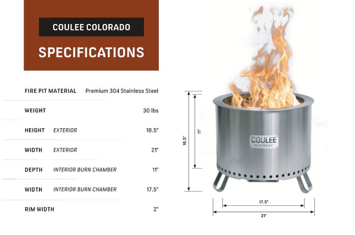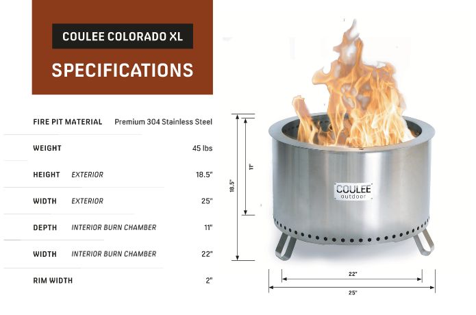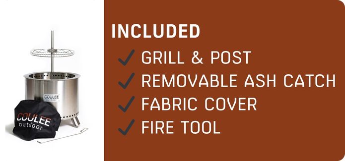 Coulee Outdoors is a company driven to create sustainable, innovative products that connect people together while respecting and protecting the planet. Coulee Outdoor Firepits are constructed of durable, sustainable, top-quality materials making their pieces last for years! Coulee Outdoor Firepits are double wall constructed pulling air from the bottom and up through the vent holes that re-burn smoke as it rises to provide a more enjoyable, mesmerizing fire. The secondary vent holes aid in a secondary burn which allows the smoke to mix with the additional oxygen allowing significantly LESS SMOKE. This is what makes the experience around the campfire so enjoyable.