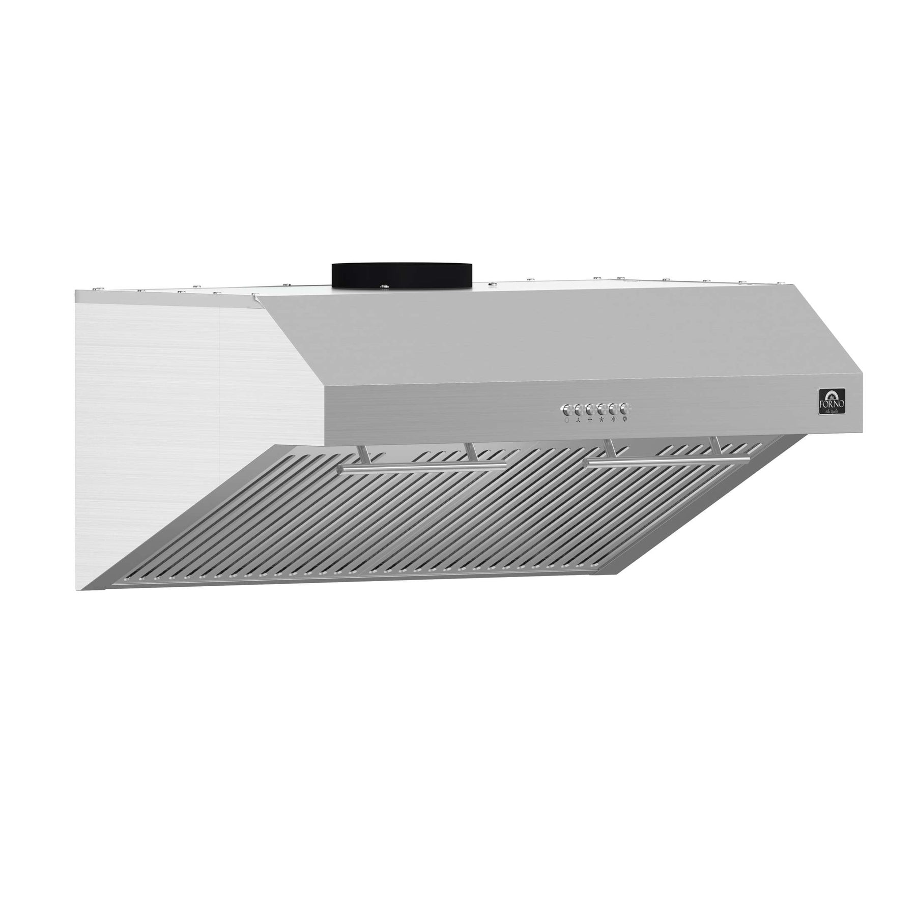 Forno presents the Bari 30 Inch Espresso Range Hood, an exceptional under-cabinet range hood that boasts an elegant stainless steel finish, adding a touch of sophistication to your kitchen space. With its powerful 400 CFM airflow, this range hood efficiently eliminates cooking odors, smoke, and airborne grease, ensuring a fresh and clean environment. The user-friendly 4-speed push button control allows you to adjust the ventilation settings effortlessly, providing optimal performance tailored to your needs. Illuminate your cooking area with two built-in LED surface lights, offering bright and even lighting for a delightful culinary experience. Equipped with durable hybrid filters, this range hood effectively traps grease and debris, ensuring easy maintenance and prolonging the lifespan of the appliance. Upgrade your kitchen with the versatile and high-performing under-cabinet range hood from Forno, where style meets functionality.