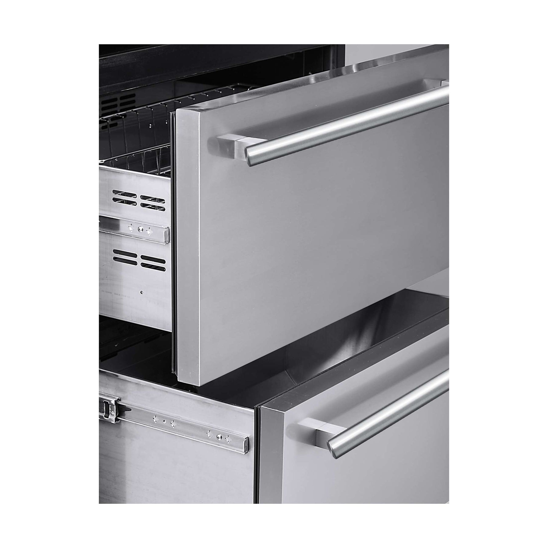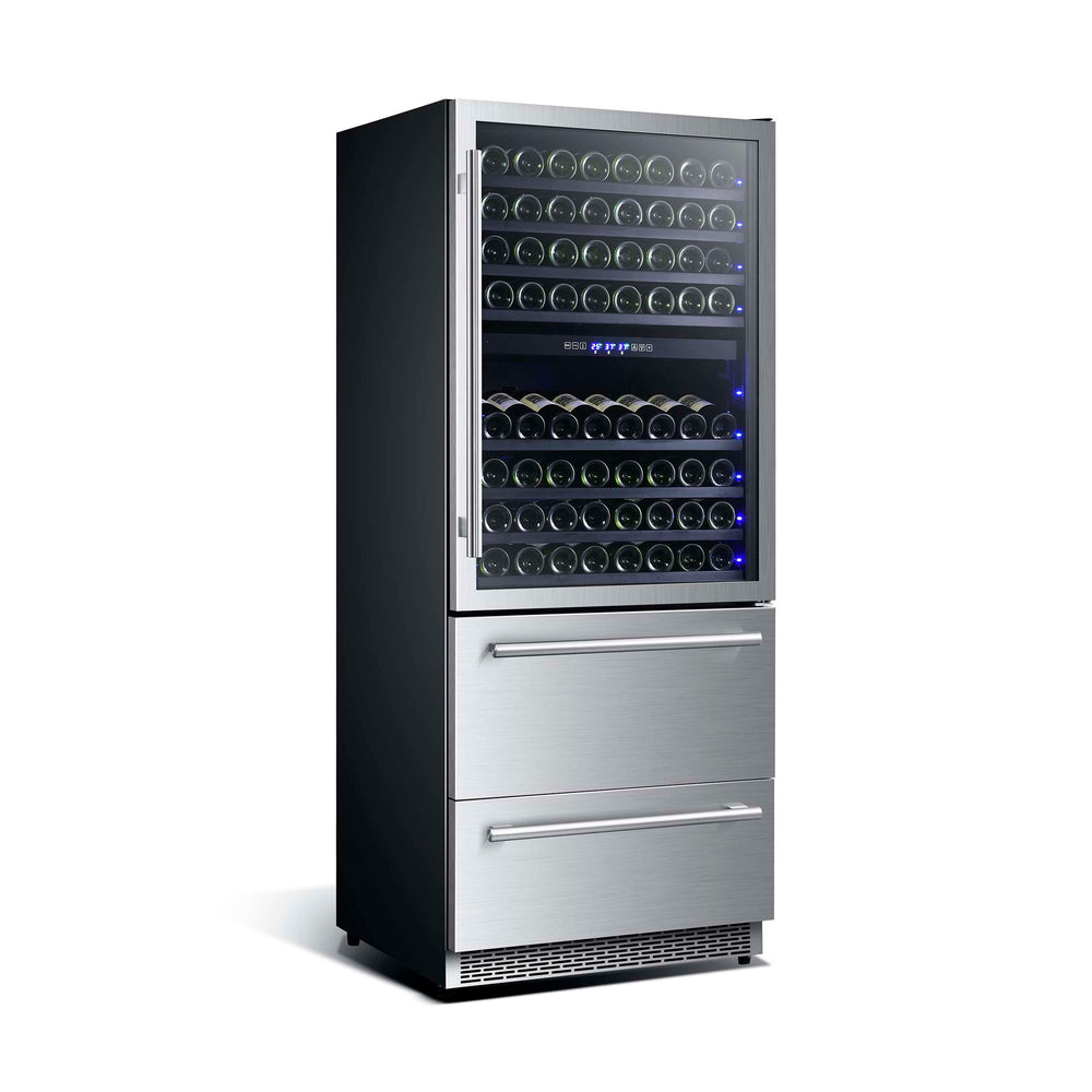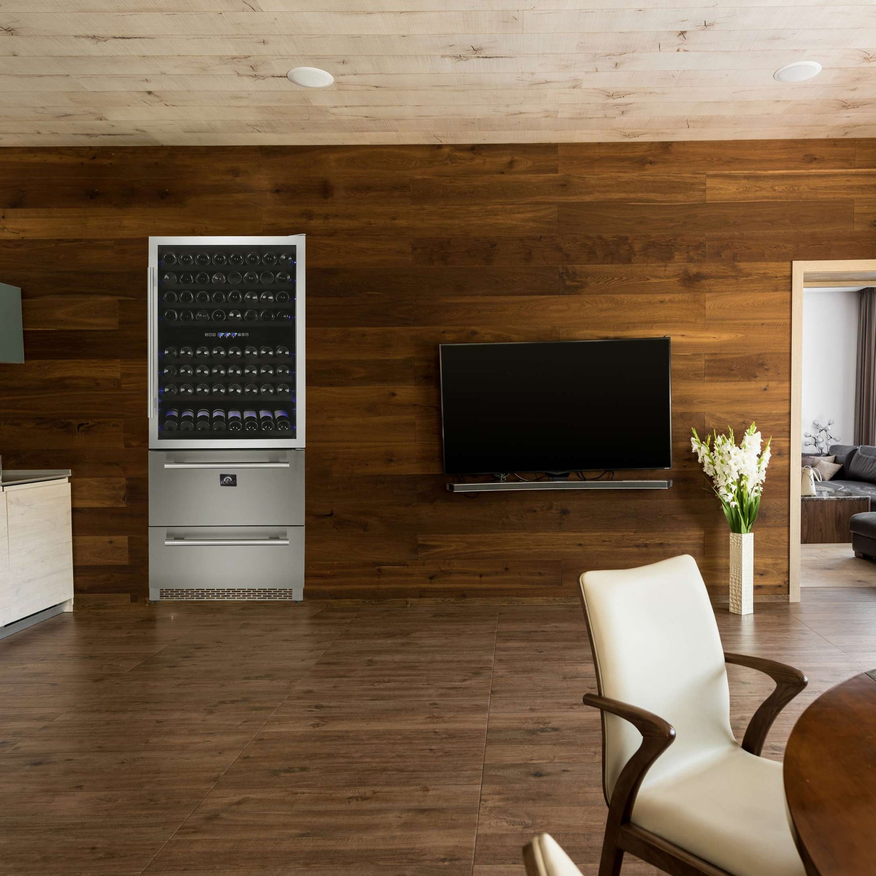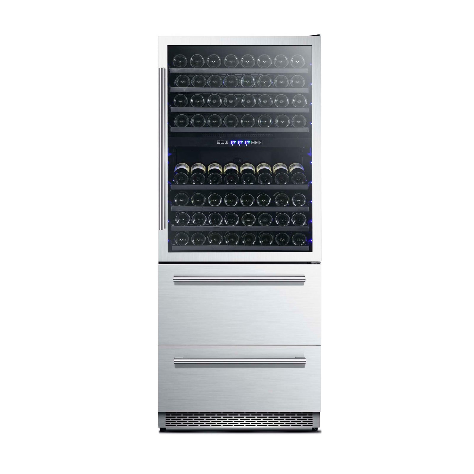 The FORNO Capraia 30 Inch wide wine and refrigerator storage solution will add entertaining and cool storage flexibility. The wine cellar has dual temperature zones and stores a wide temperature range to store either red or white wines, depending on your preference. Different varietals of wine require different temperature settings for optimum longer term storage. Red wines are stored between 10C/50F and 18C/65F, while white wines are stored between 4C/40'F and 10C/50F. Temperatures are selected by touching up or down on the electronic control inside the unit. The racks can be removed for storing larger design bottles or volume bottle styles such as magnums. The two stainless-steel lined drawers can store anything you normally would put in a refrigerator, even fruit at a higher temp to keep the flavor and juices ready for any beverage.
