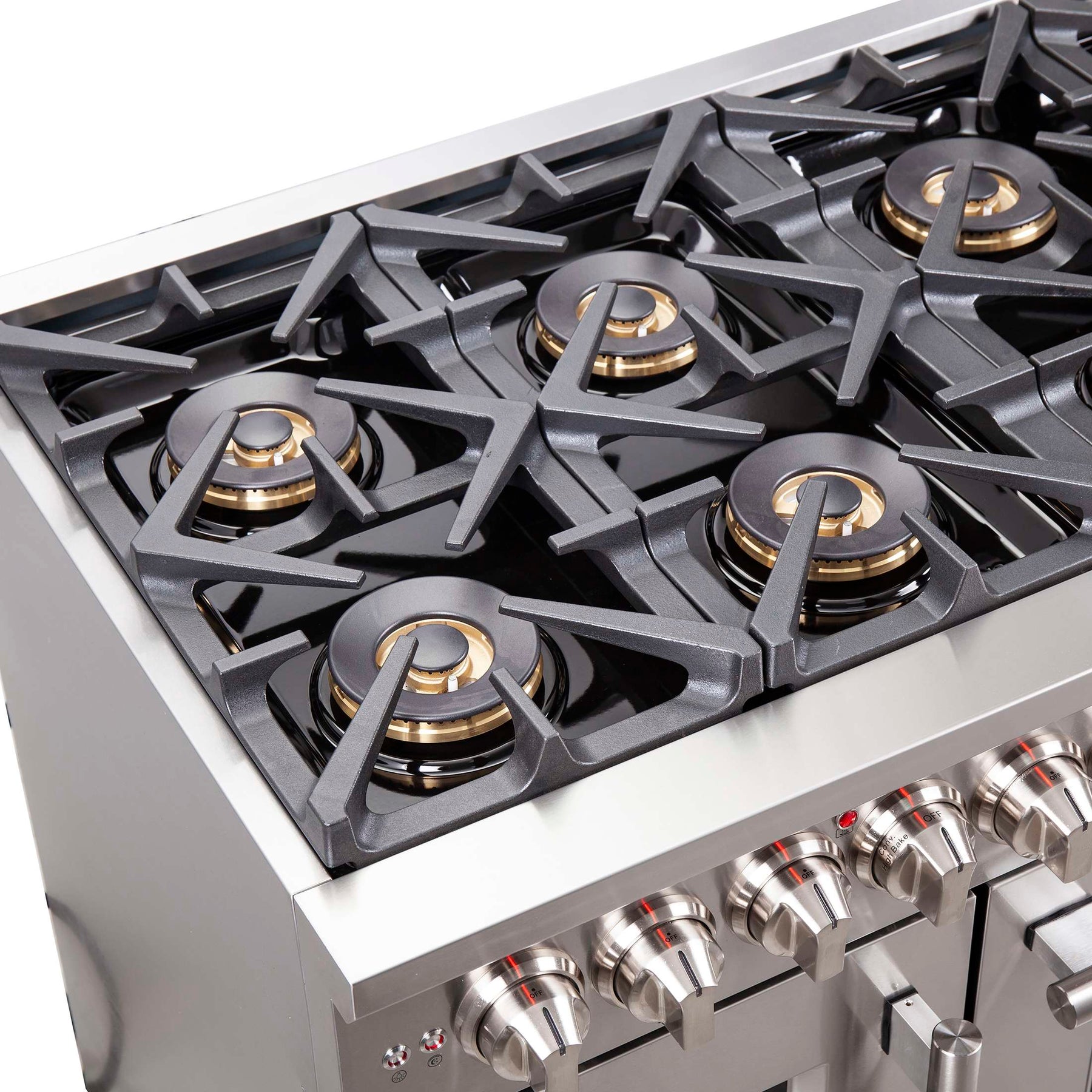 * Sealed Dual-Ring Brass Burners can achieve high heat searing or delicate simmering control