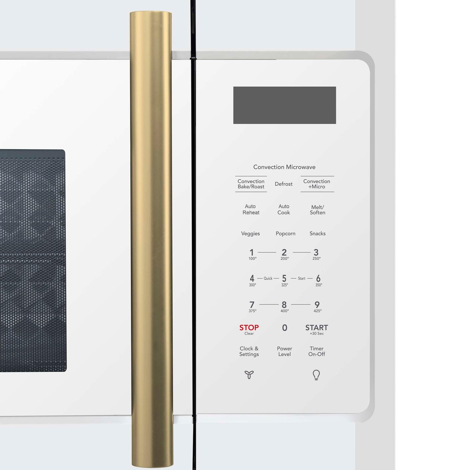 The Fornace 30 Inch Over the Range Microwave in White combines microwave, convection, and speed cooking functions in one versatile appliance. Designed to be smudge-resistant, it features a sleek digital display, LED lighting, and an easy to clean washable filter. The touchpad controls and auto menu programs make everyday cooking simple, while multistage and cook time options offer precision. A durable plastic handle in antique brass ensures a comfortable, cool to touch grip thatβs built for everyday use. With vertical, horizontal, and recirculating air discharge options, plus a powerful two-speed blower system (105/300 CFM), this undercabinet or wall-mounted microwave is a modern solution for efficient and reliable cooking.
