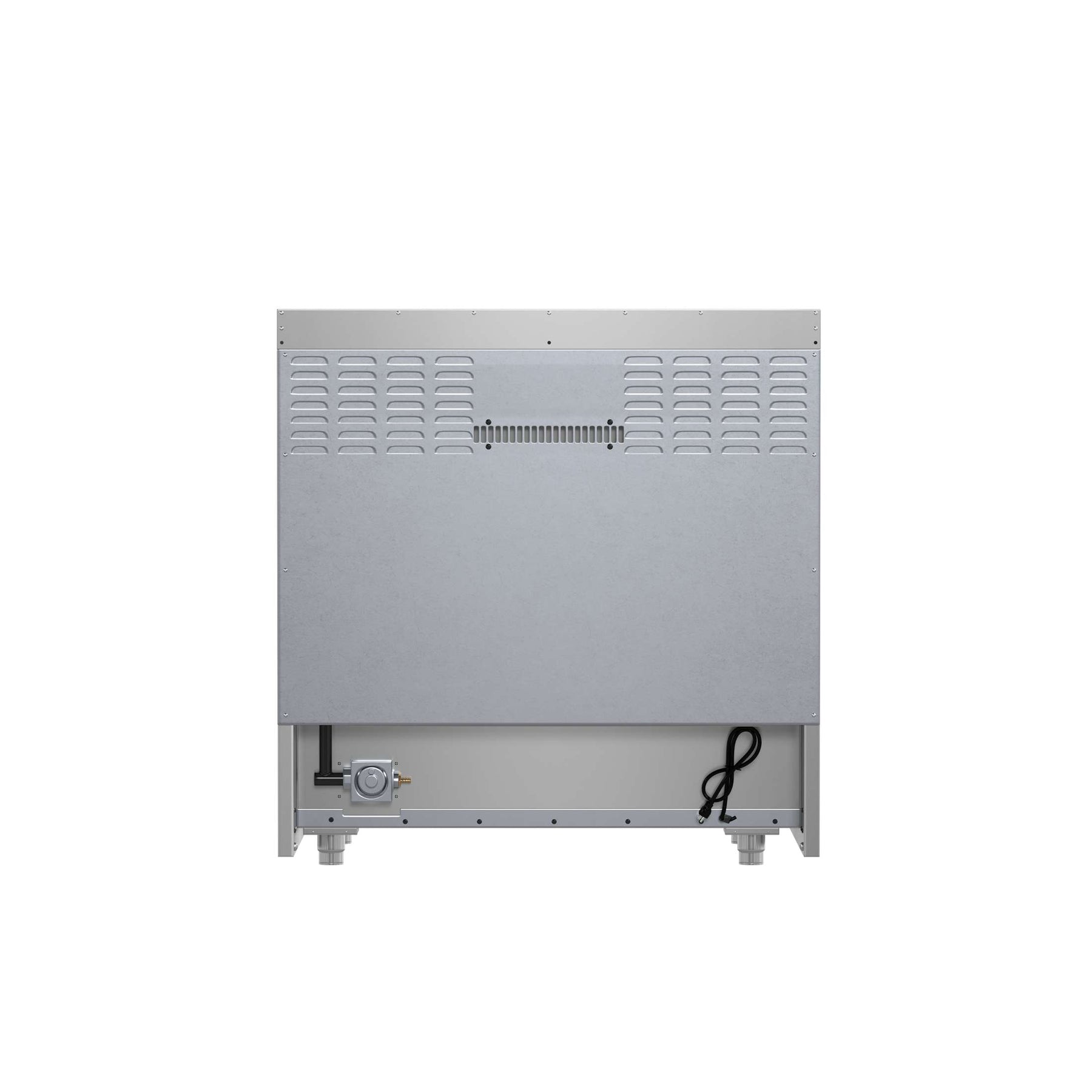 The Forno Galiano 36" French Door Gas Range brings professional styling and performance into your home kitchen at an affordable price. Enjoy effortless access to your oven with French doors that offer an extra 12 inches of space. The cooking surface has six sealed burners with a total output of 83,000 BTU - one of which is a 20,000 BTU dual-ring burner that can reach a precise simmer of 1,000 BTU. Cast iron grates ensure stability over the cooktop, making spills easy to clean. With a powerful 30,000 BTU output, the 5.36 cu. ft. oven features a sleek black enamel interior and a convection fan for quick, precise cooking. The 3-layer glass oven door lets you effortlessly monitor your meals. Zinc-coated metal knobs with bezel rings are built to stay beautiful for years, adding a touch of lasting elegance to your kitchen. Two electroplated oven racks and an LP conversion kit are included.