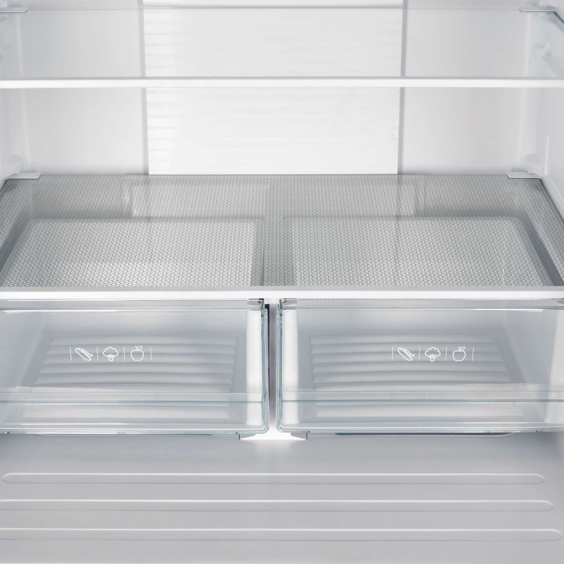 * The fresh food compartment is equipped with 3 glass shelves, 6 door bins, and 2 drawers.