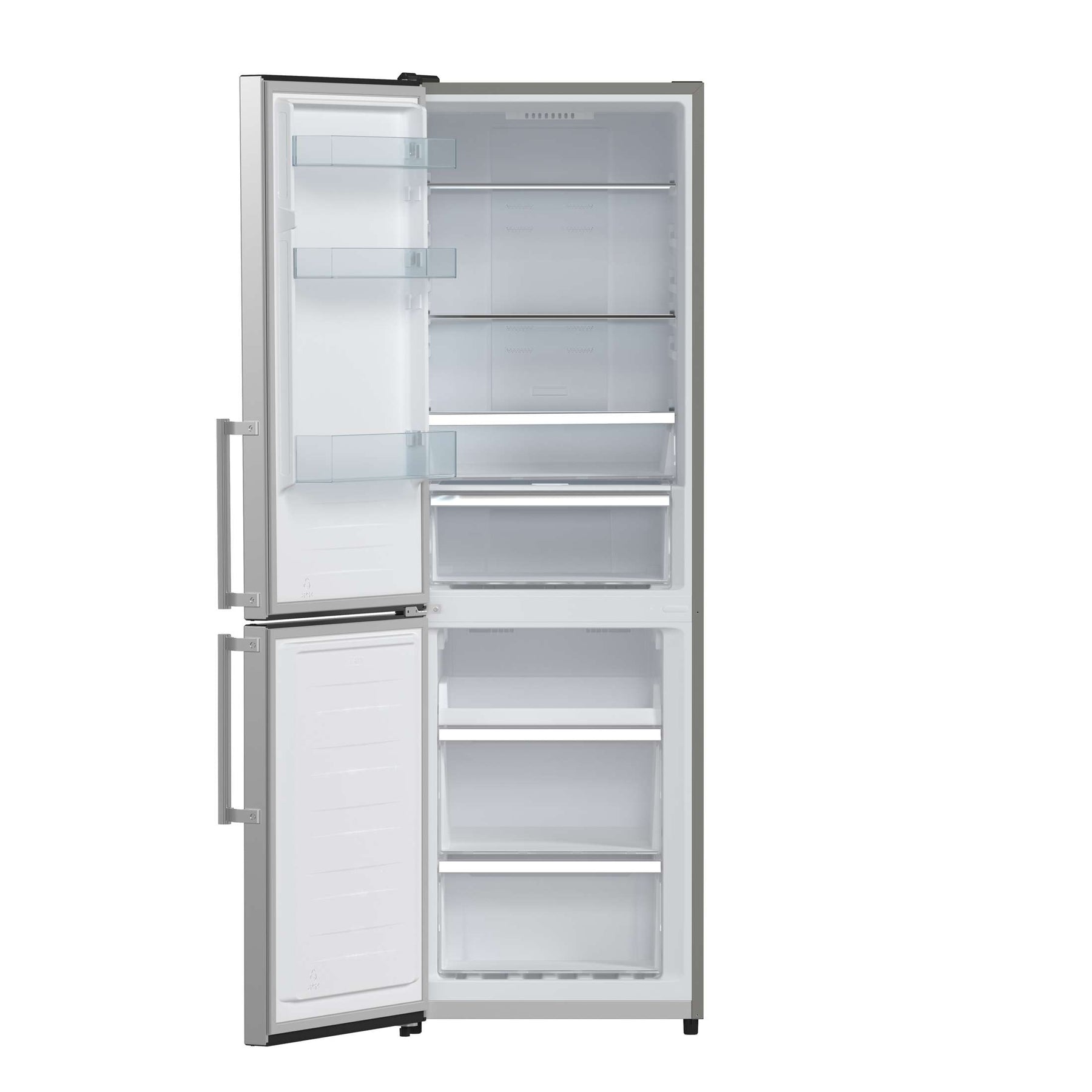 The Forno Guardia 23.4" Bottom Freezer Refrigerator offers a compact, space-saving design with a sleek stainless steel finish that complements any kitchen layout. With 10.8 cu. ft. of total capacity, the refrigerator compartment provides 7.4 cu. ft. of organized storage, including three adjustable glass shelves, a deli drawer, and a humidity-controlled crisper to keep produce fresh longer. The 3.4 cu. ft. bottom freezer features three spacious, removable drawer baskets for easy access and cleaning. Equipped with a Super Freeze function, it quickly locks in freshness while conserving energy. Energy Star Certified and designed for optimal efficiency, this refrigerator includes high-efficiency LED lighting to improve visibility and reduce food waste.