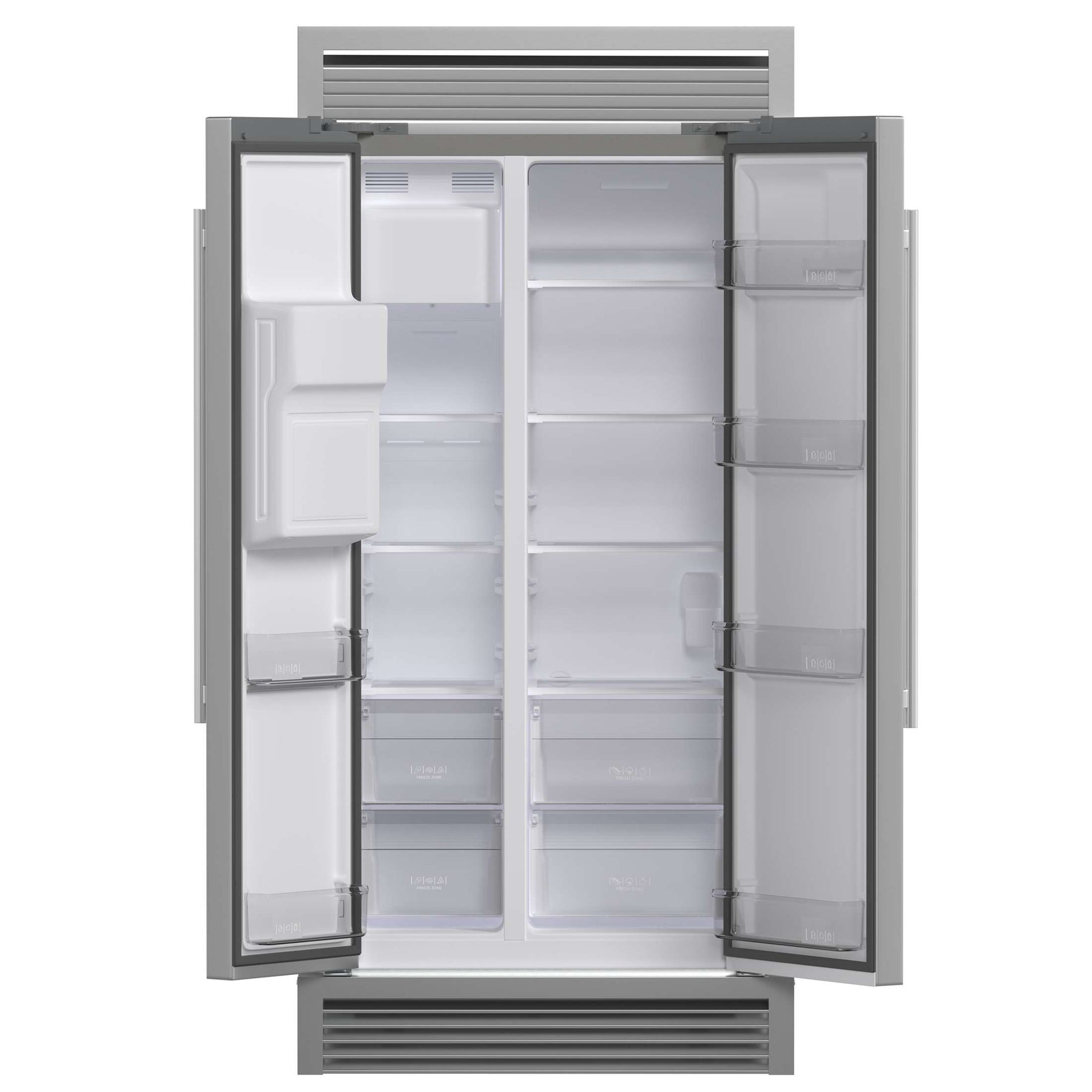 The Forno Salerno 40" Built-In Side-by-Side Refrigerator combines seamless integration with modern functionality. Designed for efficiency, its inverter compressor ensures quiet operation and precise temperature control, while the frost-free multi-air flow system keeps groceries fresh. With a spacious 20 cu. ft. capacity, this Energy Star Certified refrigerator features adjustable shelving, a 13.48 cu. ft. fresh food section with spill-proof shelves, storage drawers, and substantial door storage. The 6.53 cu. ft. freezer includes multiple shelves, bins, and drawers for easy organization. A built-in water and ice dispenser with a touchscreen panel offers effortless access to ice and temperature settings. Bright LED lighting enhances visibility while minimizing spoilage, making this refrigerator a stylish, high-performance addition to any kitchen.