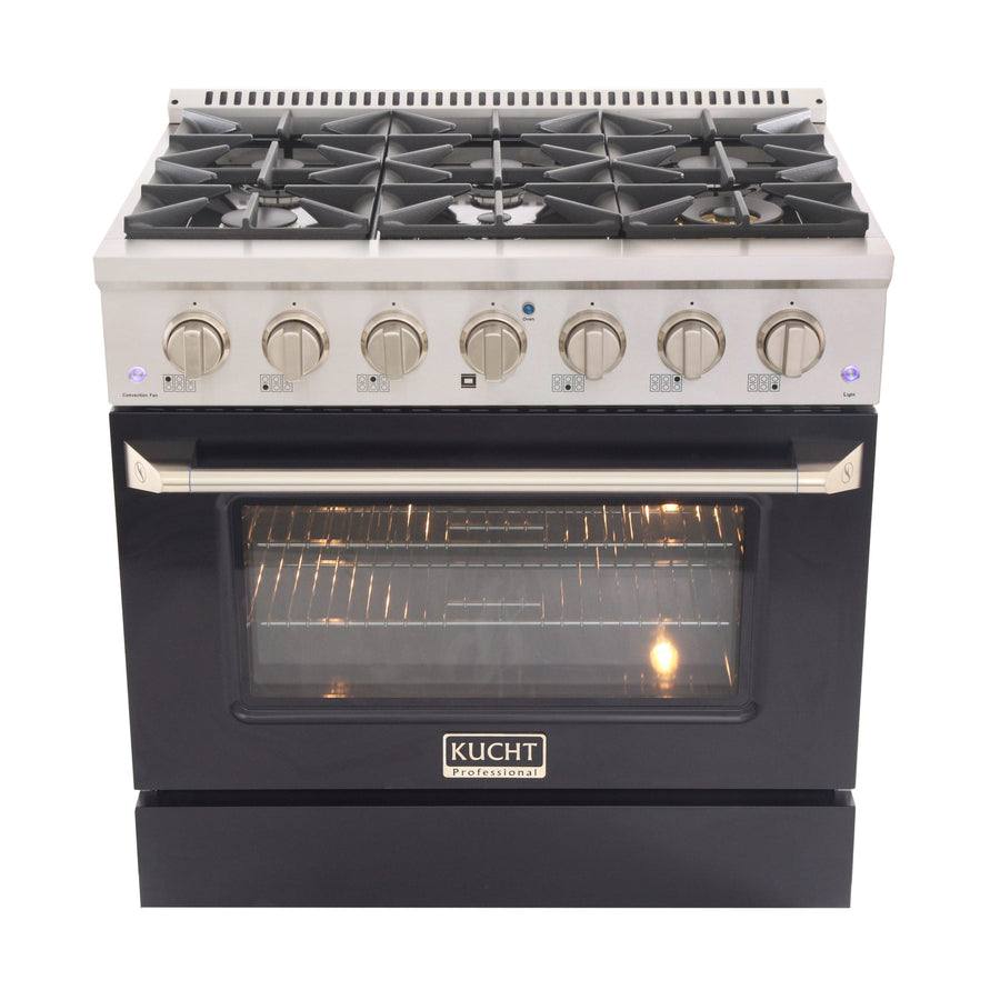 KUCHT Professional 36 in. 5.2 cu. ft. Propane Gas Range with Sealed Burners and Convection Oven in Stainless Steel with Black Oven Door