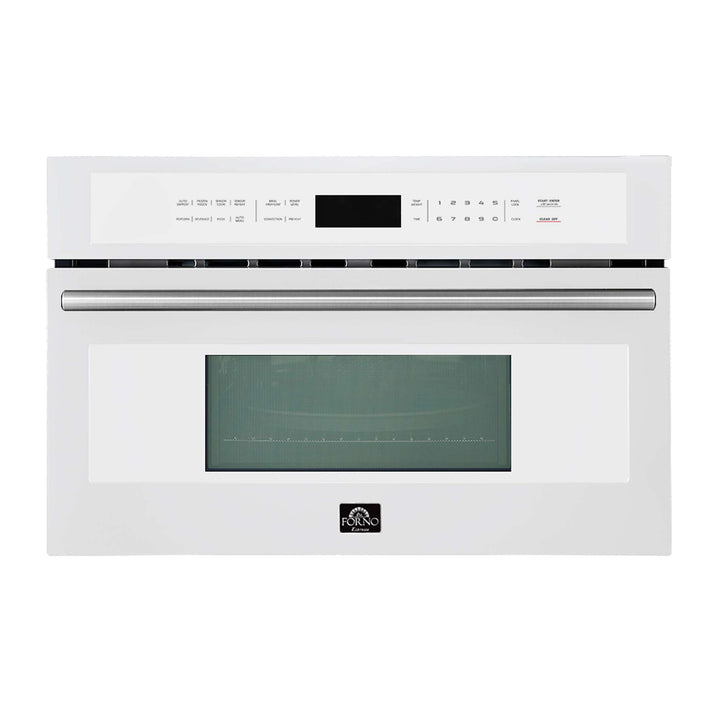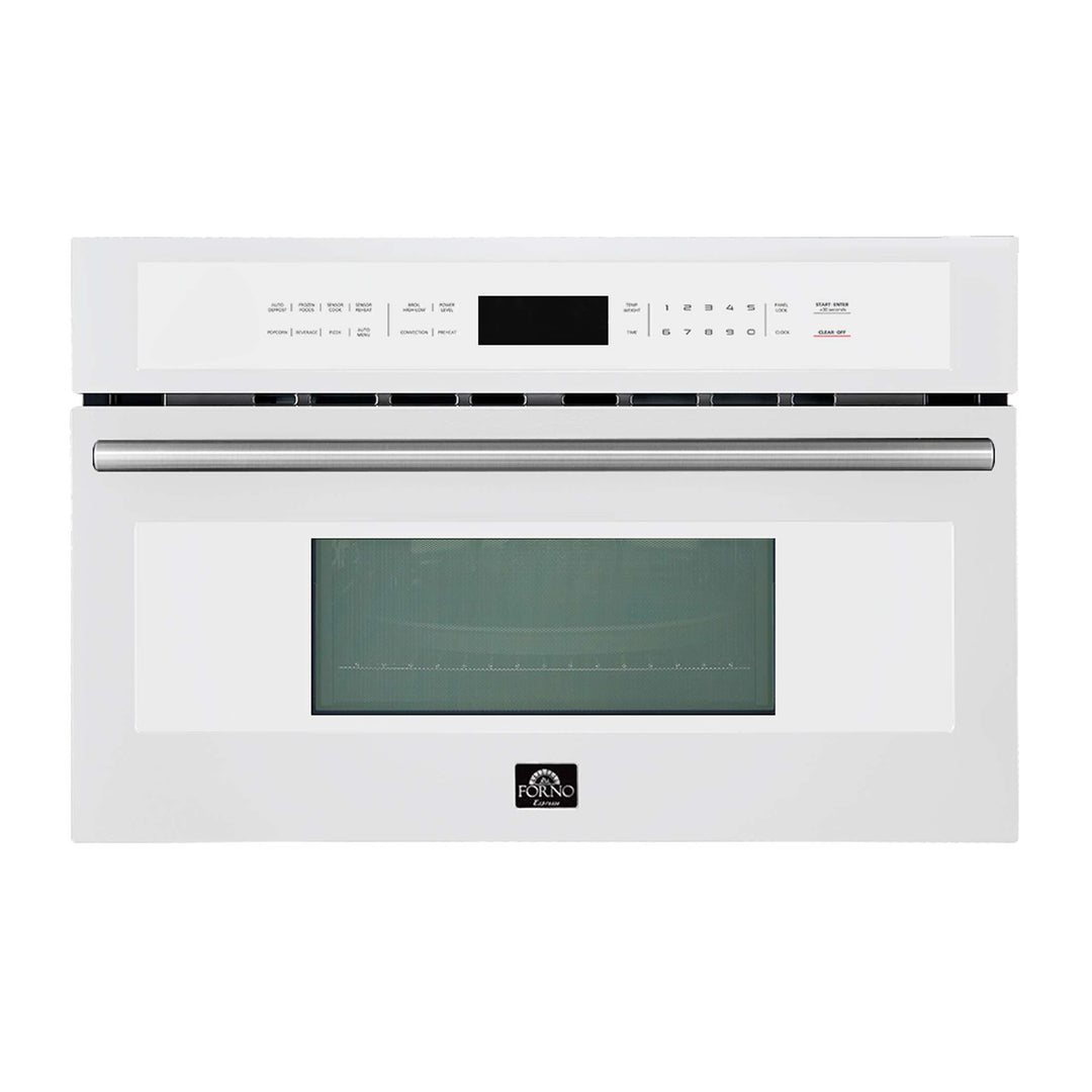 The Forno Oliena 30" Microwave & Convection Oven in white combines sleek design with versatile functionality, making it an essential addition to any modern kitchen. Its durable stainless steel interior ensures easy cleaning, while intuitive glass touch controls and an LCD display provide effortless navigation. With 1,000 watts of microwave power, it heats food quickly, boiling water in just 1 minute and 50 seconds. Switch to convection mode for even cooking with 1,700 watts of true convection, or utilize the 1,750-watt broil and 600-watt bake functions for perfectly cooked meals without using your main oven. Sensor cooking, auto menu options, and specialized modes like defrost, popcorn, and beverage heating enhance convenience. The rapid preheat feature minimizes wait times, so your dishes are ready faster. Designed for performance and efficiency, this combination microwave oven elevates your cooking experience with precision and speed.