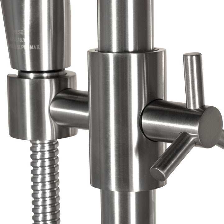 The AquaBar replaces your existing showerhead with an adjustable slide bar and multi-function handshower. Position your handshower at the perfect angle and desired height with 23 inches of vertical adjustment. The multi-function handshower can easily switch between functions with the push of your thumb.