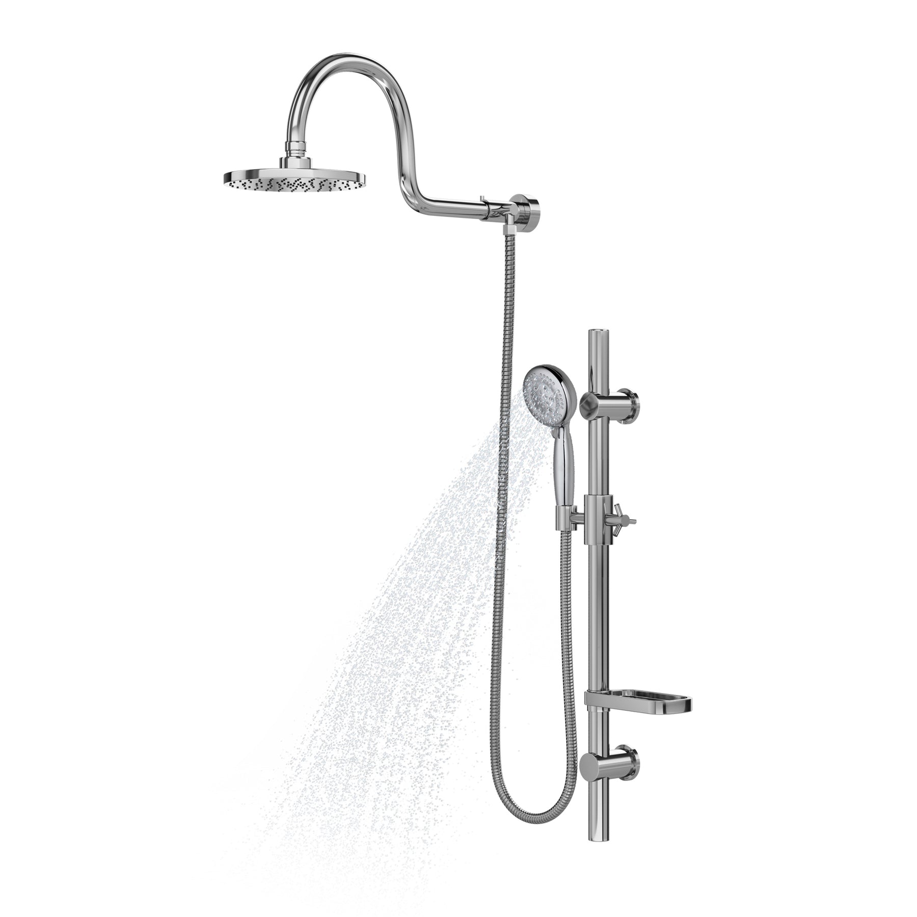 - Slide bar adjusts height of handshower and soap dish