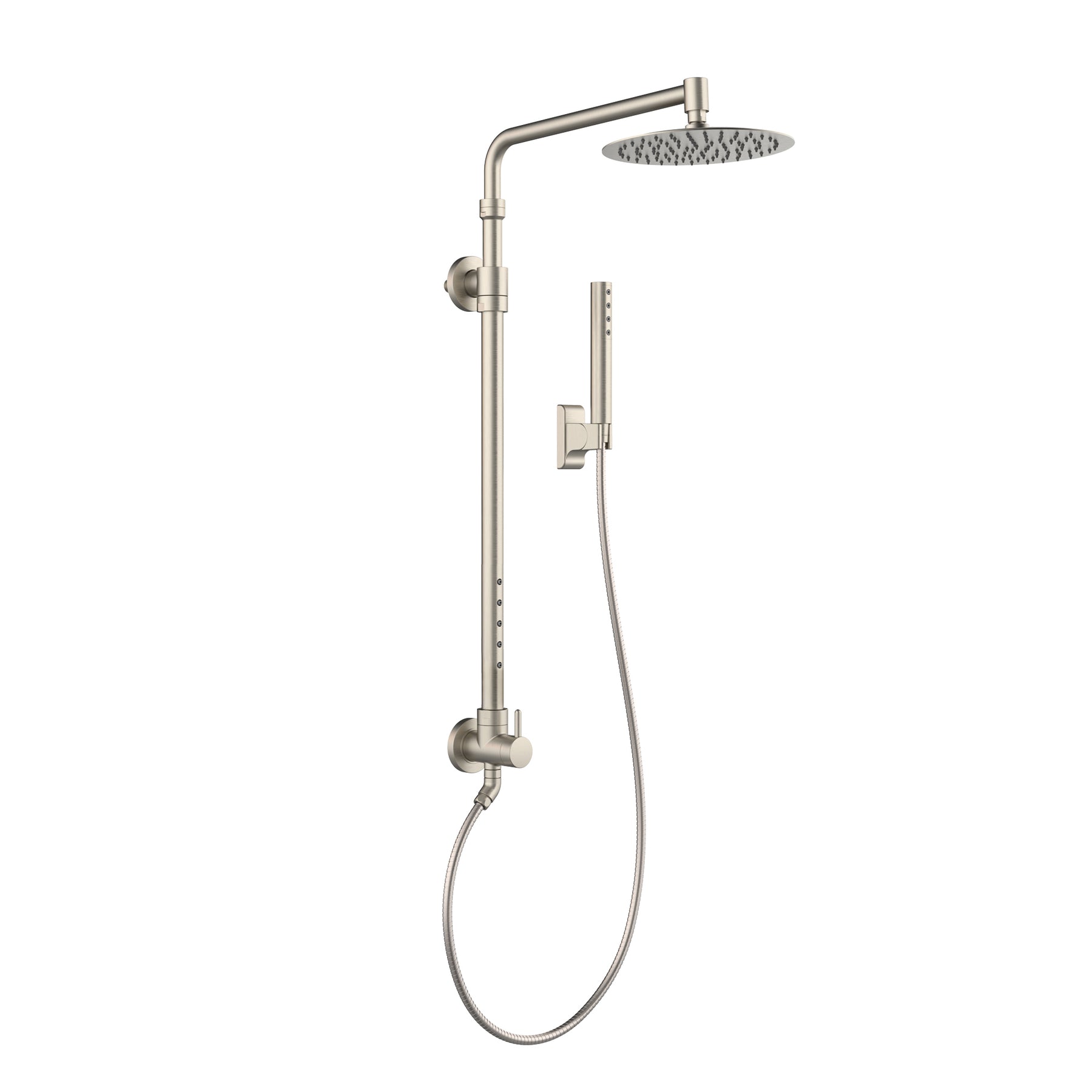 The Atlantis Shower System is a beautifully sleek showerhead that compliments any bathroom. The all brass body and fixtures make this showerhead one of the most durable of its kind. The 10 inch rain showerhead along with the 5 PULSE Power Nozzles™ allow you to relax and wash your day away. The convenient handshower can be mounted at your desired location. The Atlantis Shower System is surface mounted, pre-plumbed and designed to use two functions at a time. Available in brushed nickel, chrome, matte black and oil-rubbed bronze. Optional ADA compliant assist bar (not included).