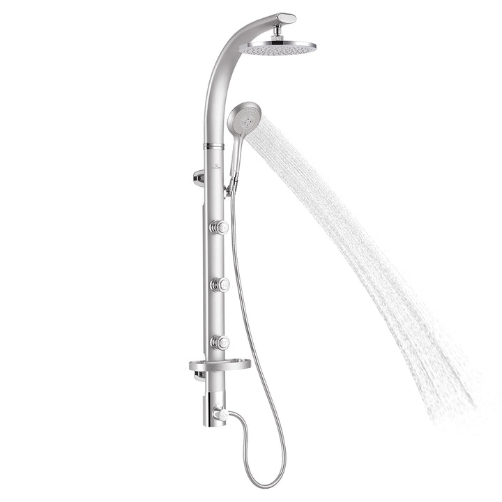 Packed with features, the Bonzai Shower System will perform to perfection! The 8" rain showerhead easily pivots side to side on an elegantly arched shower arm. Three relaxing body jets with pulsating spray can be angled to hit just the right spots. A five function handshower completes the bundle by offering an array of patterns to sooth your body. Installation is a breeze… Invigoration is assured! Designed to install in virtually any shower without remodeling, a typical install is less than 1 hour—even for the do it yourselfer. It simply connects to water supply at your existing showerhead location and uses your existing hot/cold shower valve.