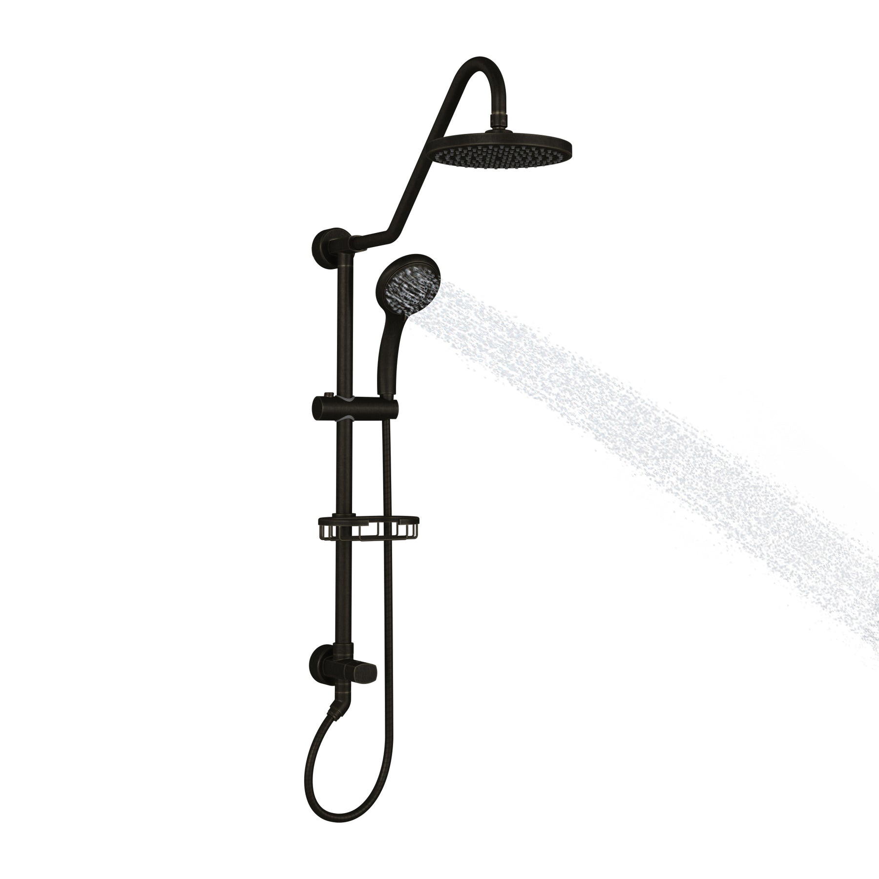 The Kauai Rain Shower System is brilliantly simple! Designed to use your existing valve, it replaces the old showerhead with an elegant rain showerhead and multi-function handshower. The integrated brass slide bar allows adjustable height control for the handshower and brass soap dish while providing a conveniently located diverter for switching functions. The soothing rain showerhead and multi-function handshower can be used separately or together for a multitude of spray combinations. Available in Chrome, Brushed Gold, Brushed Nickel, Matte Black or Oil-Rubbed bronze to match any decor. The Kauai Shower System simply connects to the water supply at your existing showerhead location and uses your existing hot/cold shower valve. This Shower System does not come with a hot/cold mixing valve, please refer to the Tru-Temp valve (Model #3001-RIV-PB) if you are remodeling and need a valve.