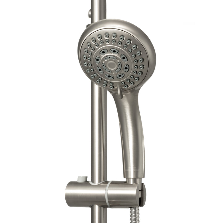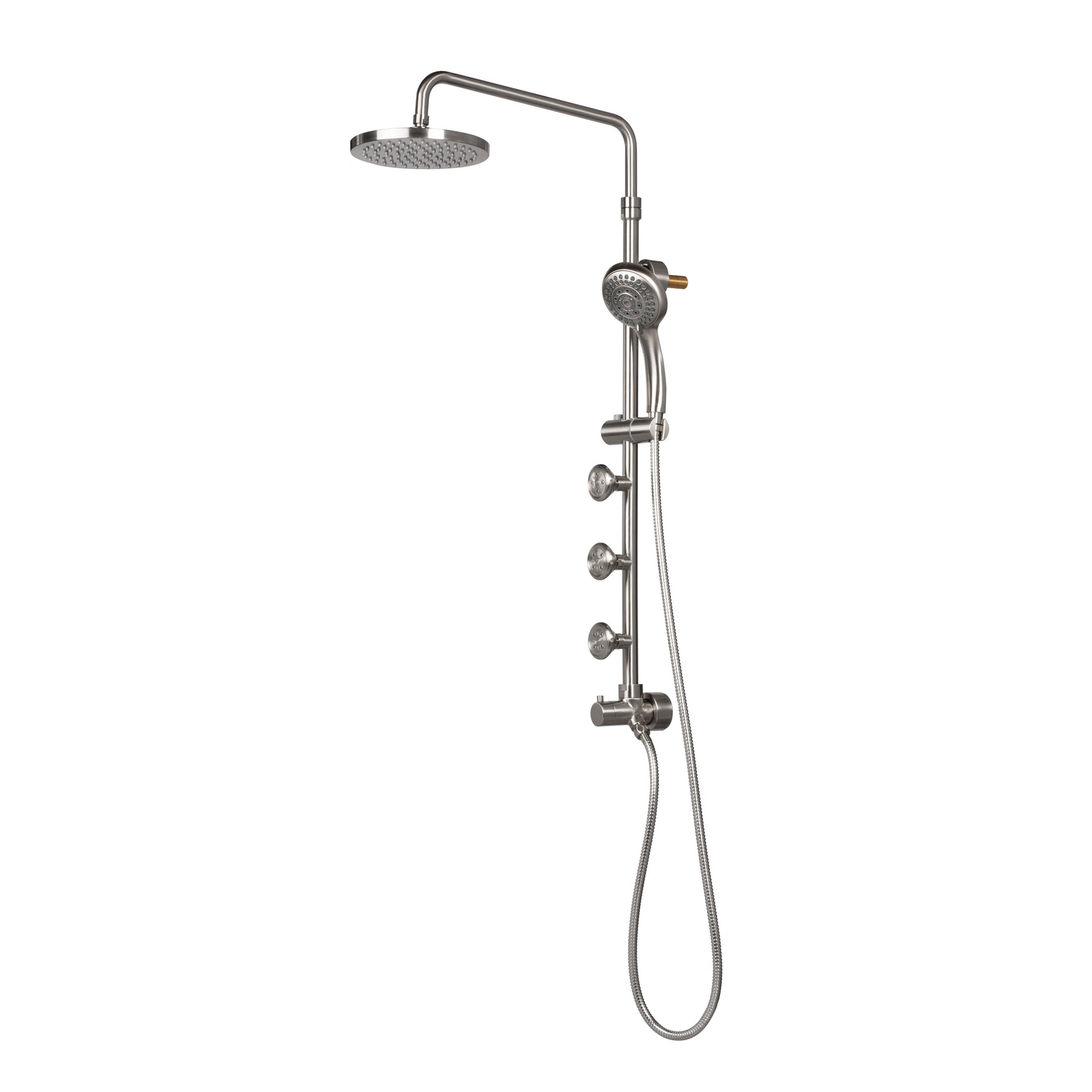 The Lanikai 3 Function Shower System quickly and easily transforms your shower. Enjoy fingertip control via the conveniently located diverter. Choose between a soothing, oversized rain showerhead, convenient multi-function hand shower, or rejuvenating dual-function body jets. The unique brass shower arm pivots and has 3" of height adjustment. Typical install is less than 1 hour—even for the do it yourselfer. It simply connects to the water supply at your existing showerhead location and uses your existing hot/cold shower valve.