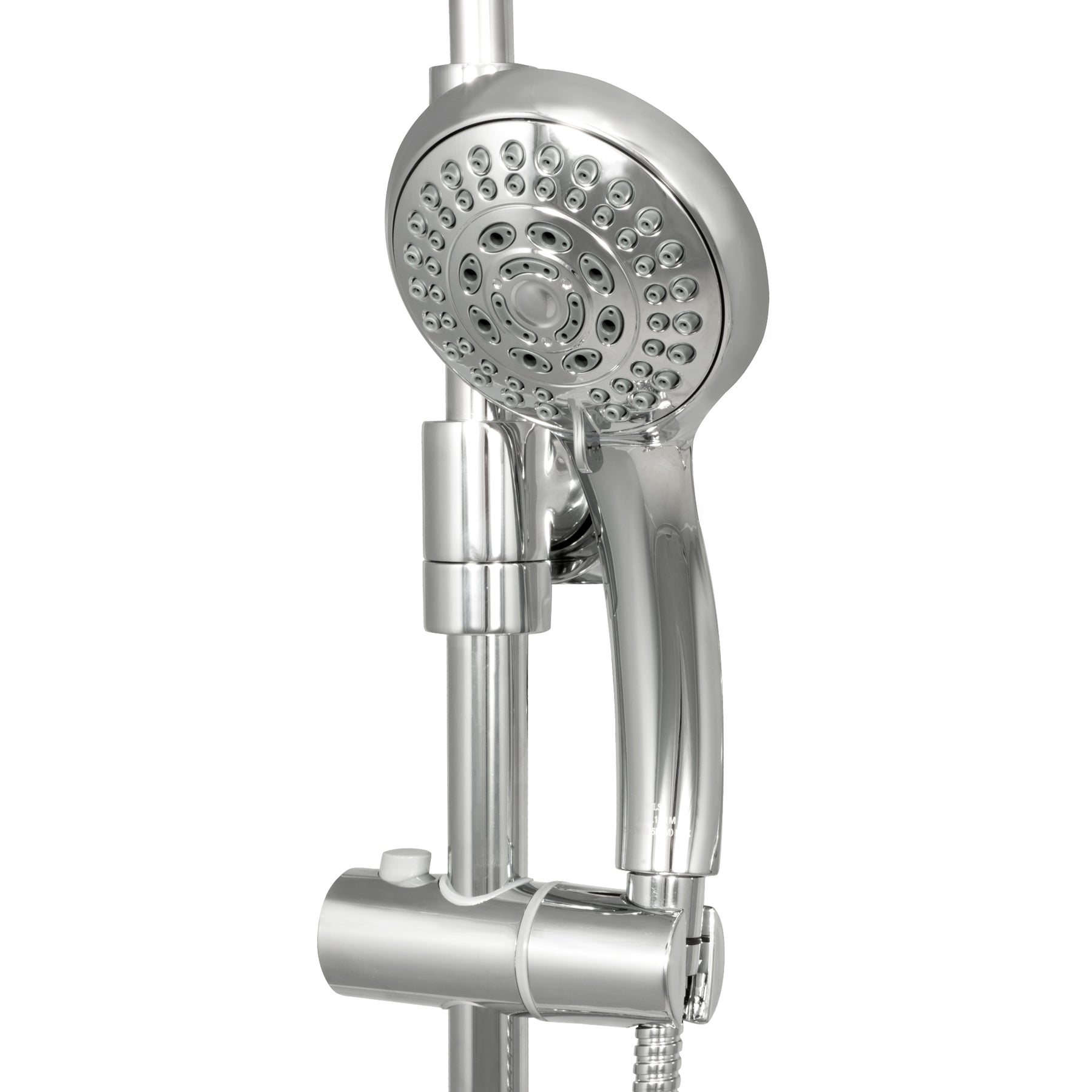 - Five-function hand shower with 59" double-interlocking stainless steel hose