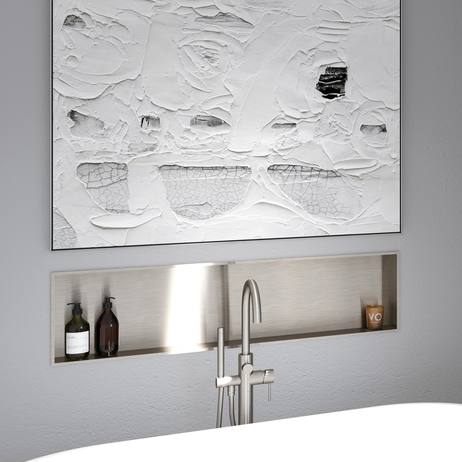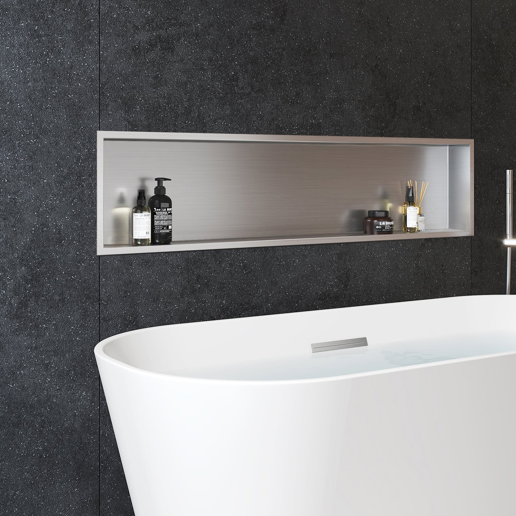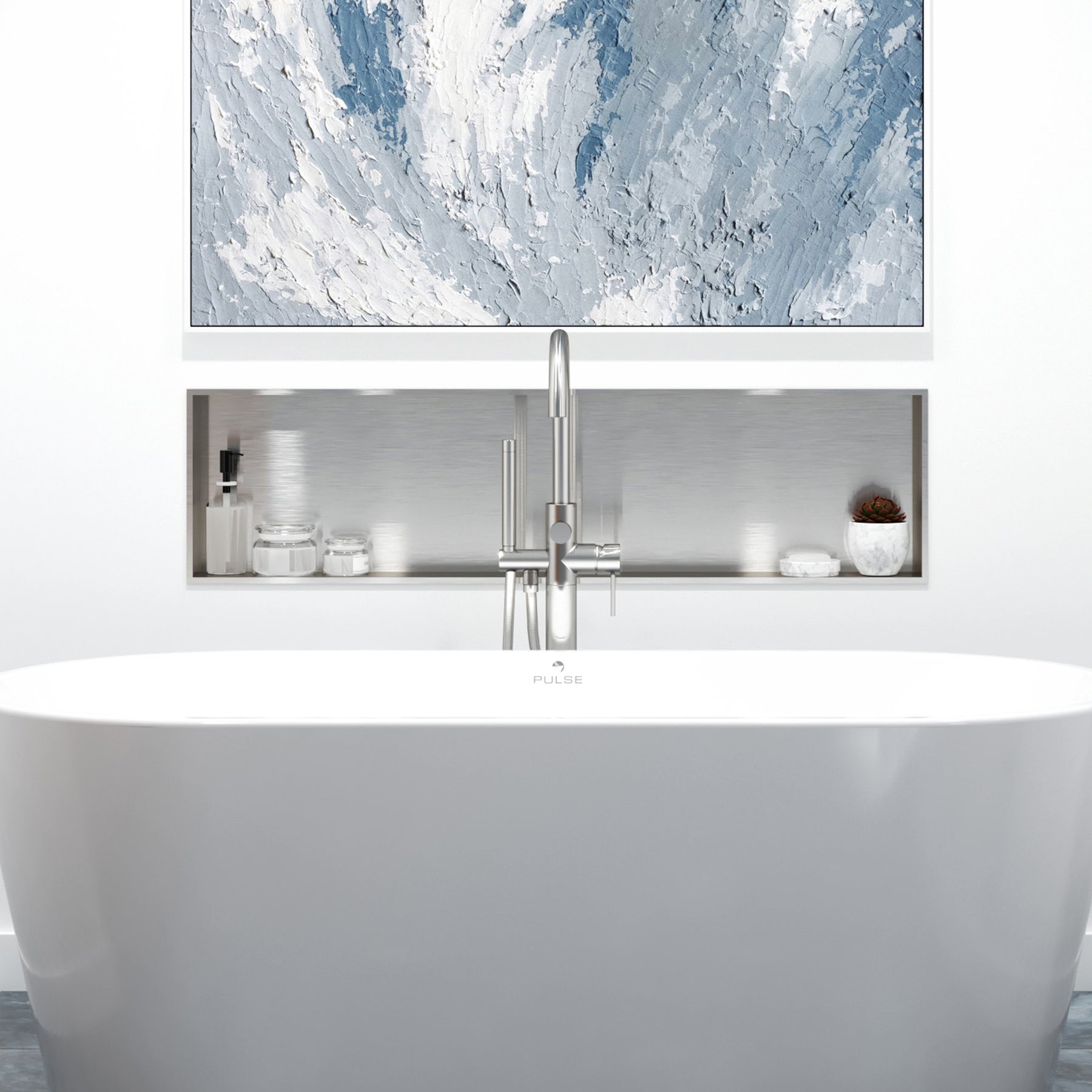 The PULSE ShowerSpas Niche is a versatile shelving unit that is 100% waterproof. Made to be used in any room, including showers and restrooms, the Niche compliments any wall. It is made of stainless steel and has an ultra-thin frame designed by exclusive technology, providing an exquisite look with high quality and integrity. The 10mm thin rectangular boarder gives the Niche a sleek and modern look.
