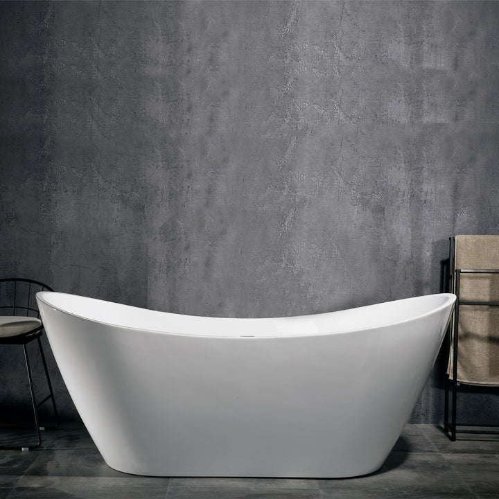 • 100% glossy white acrylic freestanding tub in white complements any bathroom