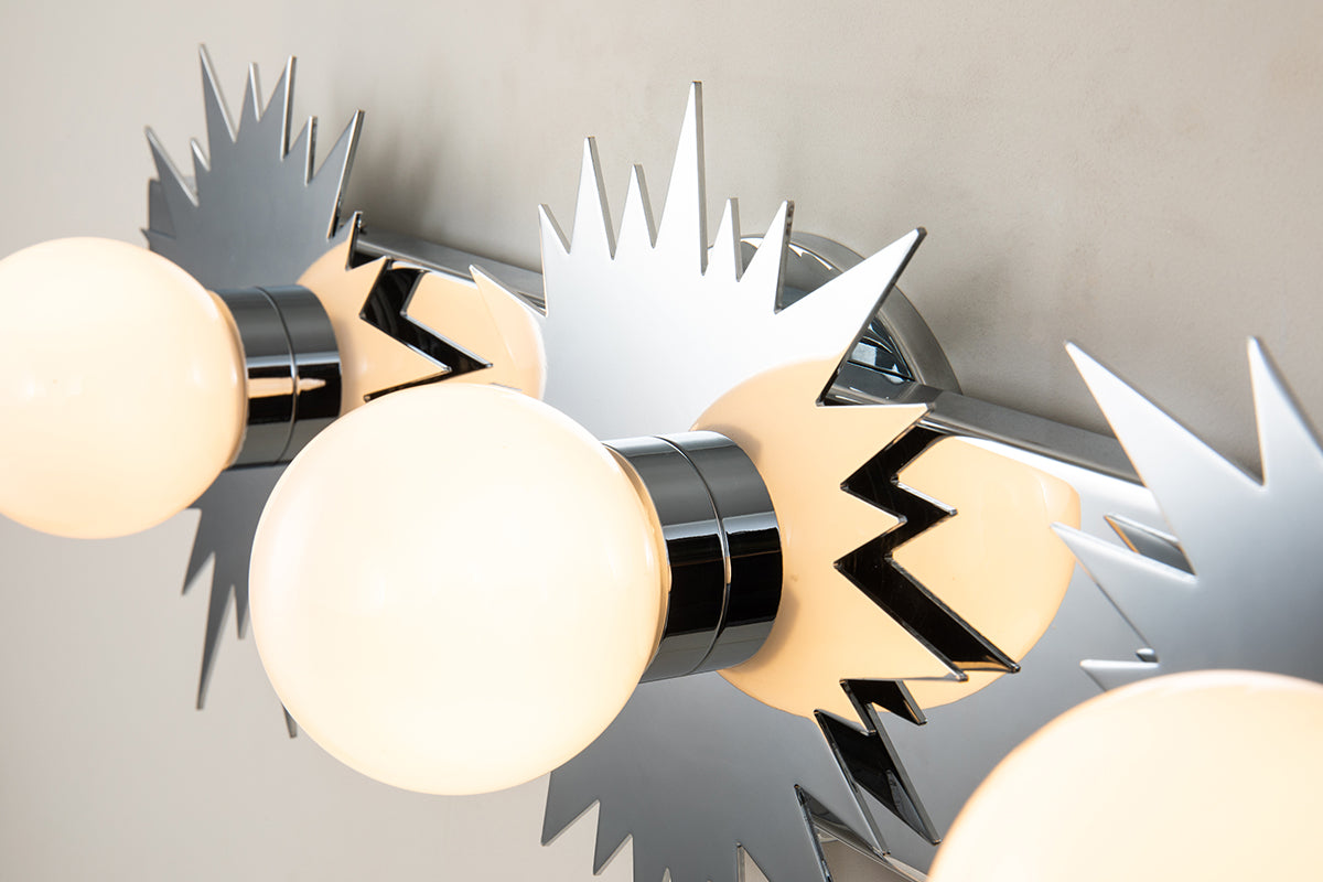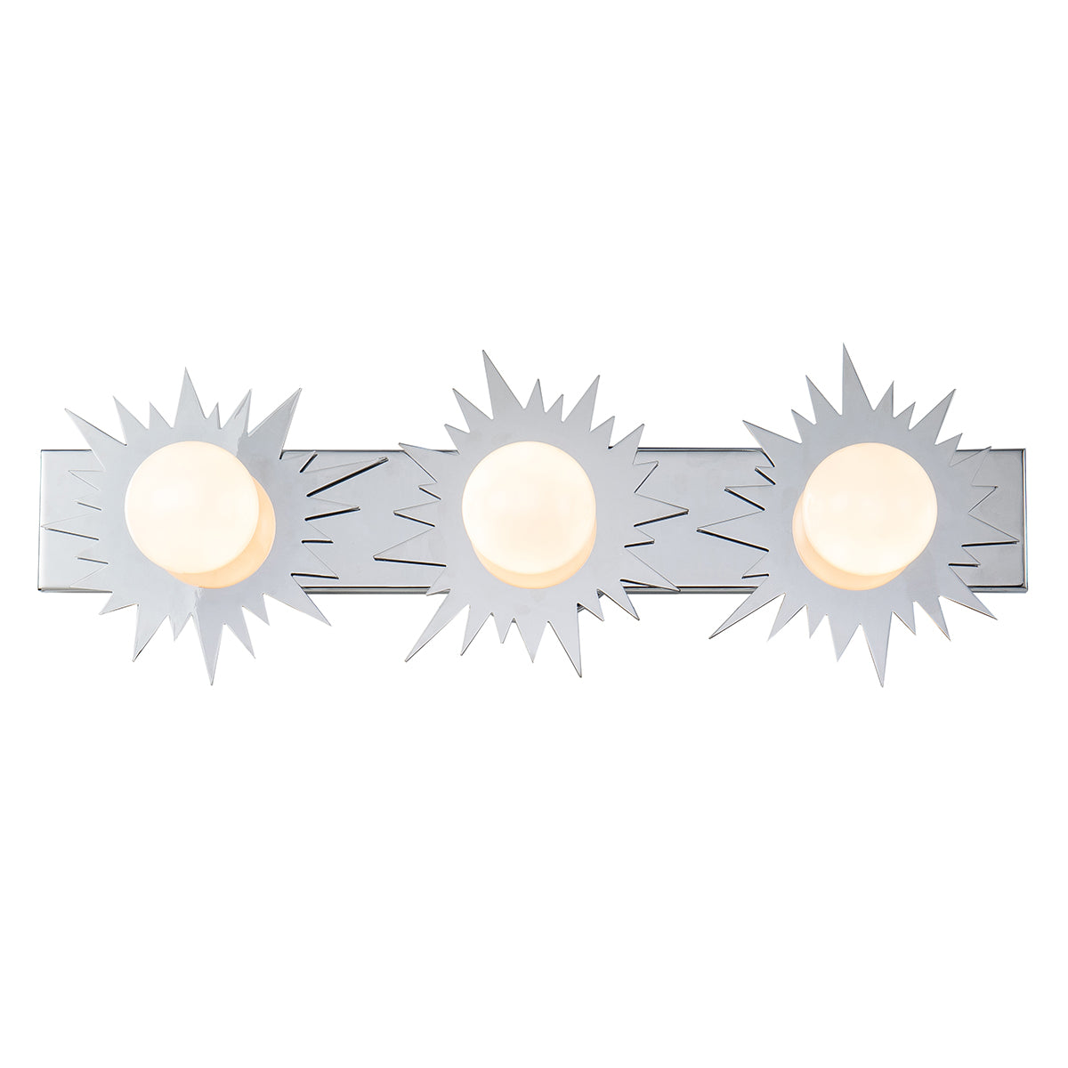 Looking to lighten up your space with a whimsical and art-inspired piece? Designed using a statement-making sun shape , this three-light vanity light is the favorite pick for installing in pairs over your favorite mirrors. Creating an eye-catching focal point, this 3- light star shaped bath light is unique enough to work in the most sophisticated spaces, and using the polished chrome finish to add a little more drama to your bathroom space. Measuring 24" in length, 8.5" in height and 4.5" in depth, the Soleil bathroom light can easily help to updated bathroom.
