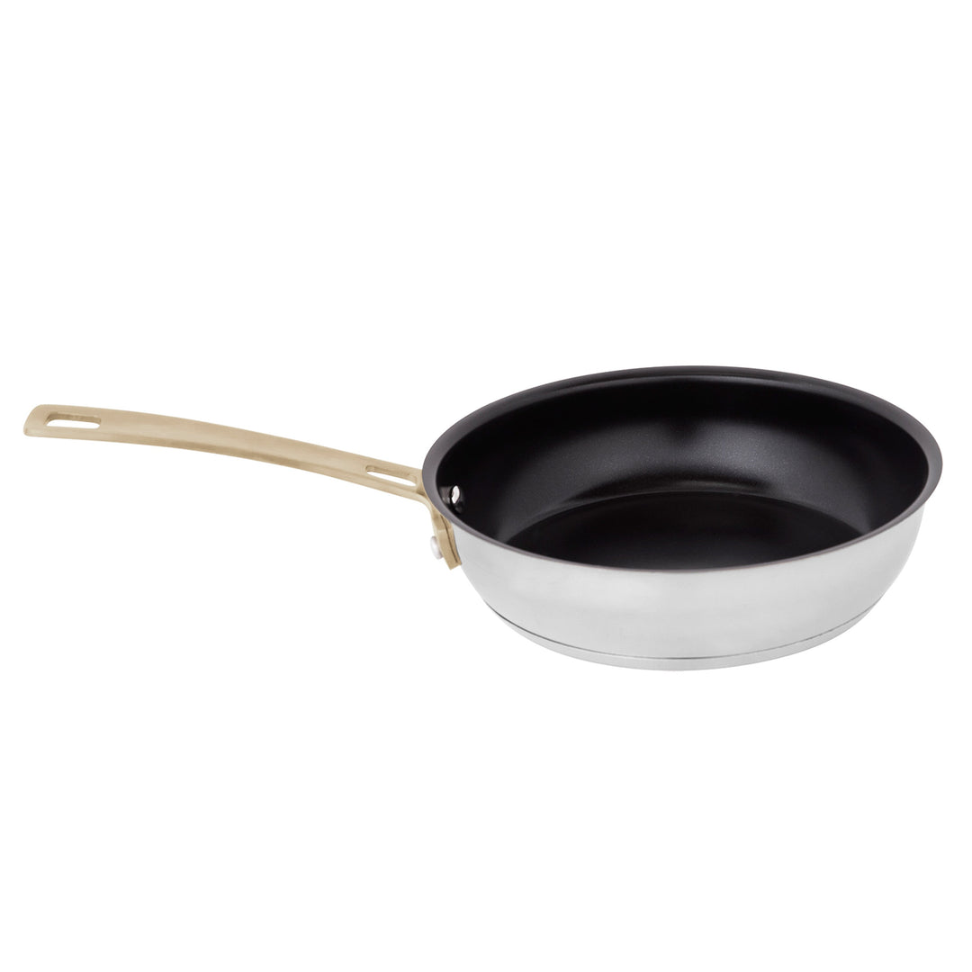 3-Ply Fry Pan. The 3 plies are expertly crafted for superior heat distribution and retention with 430 Stainless Steel, Aluminum and 304 Stainless Steel