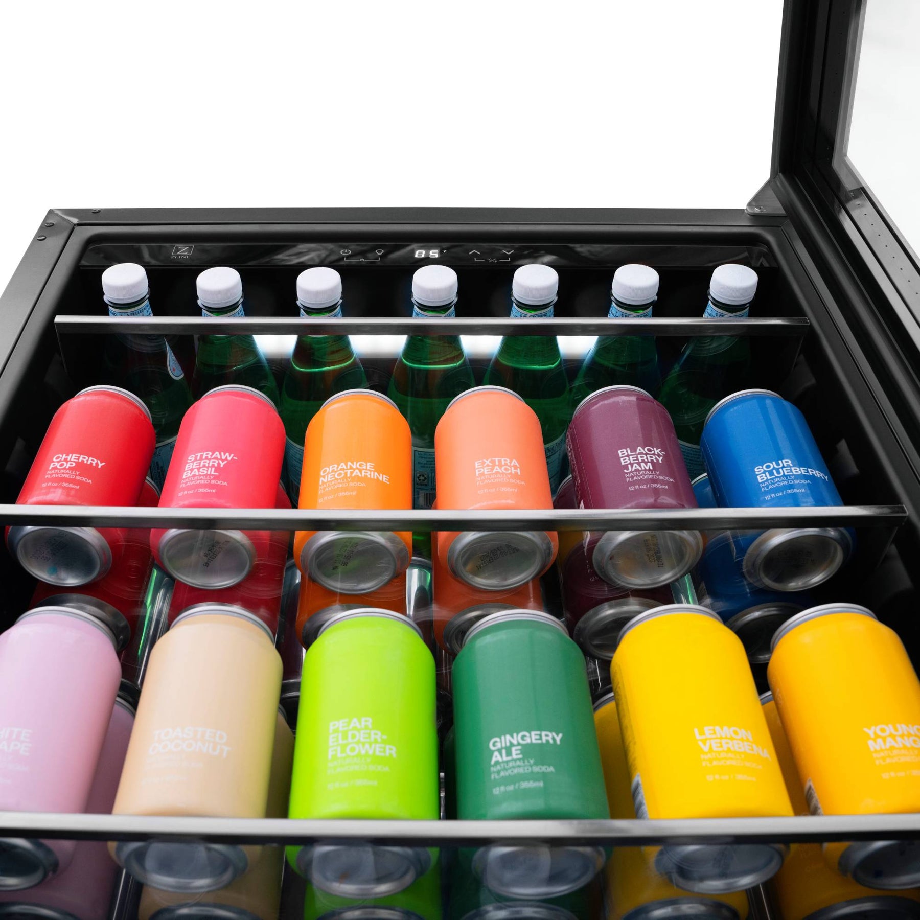 Spacious Storage - Easily store up to 126 cans (12 oz) and 12 Bordeaux-style (750 mL) wine bottles with 3 durable glass storage shelves