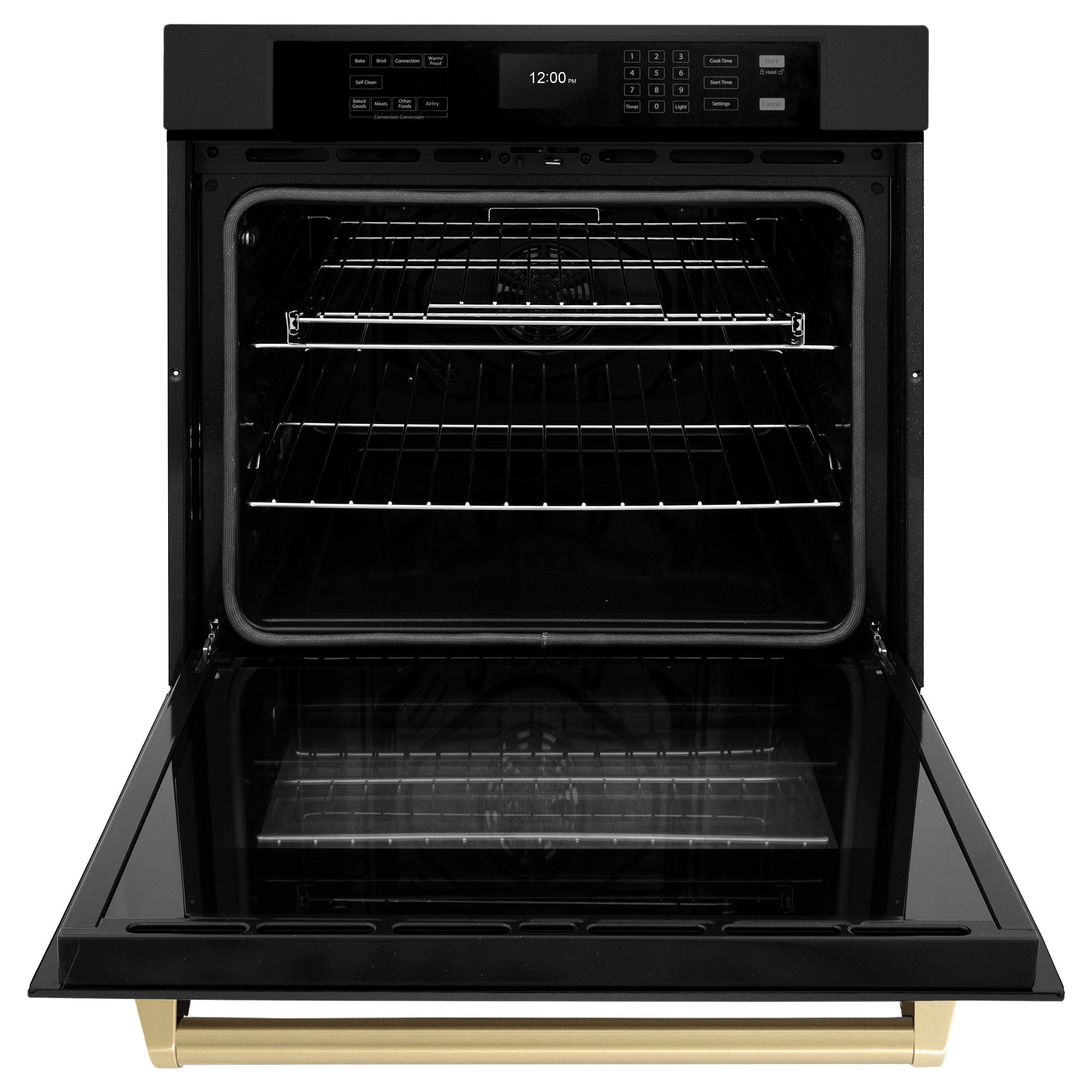 Upgrade your kitchen with the ZLINE 30" Autograph Edition Single Wall Oven, featuring True Convection, Air Fry mode, and Self-Cleaning technology. This luxury oven is designed for modern homes, with added features such as Sabbath Mode, Child Lock, and touchscreen controls for an efficient and enjoyable cooking experience.