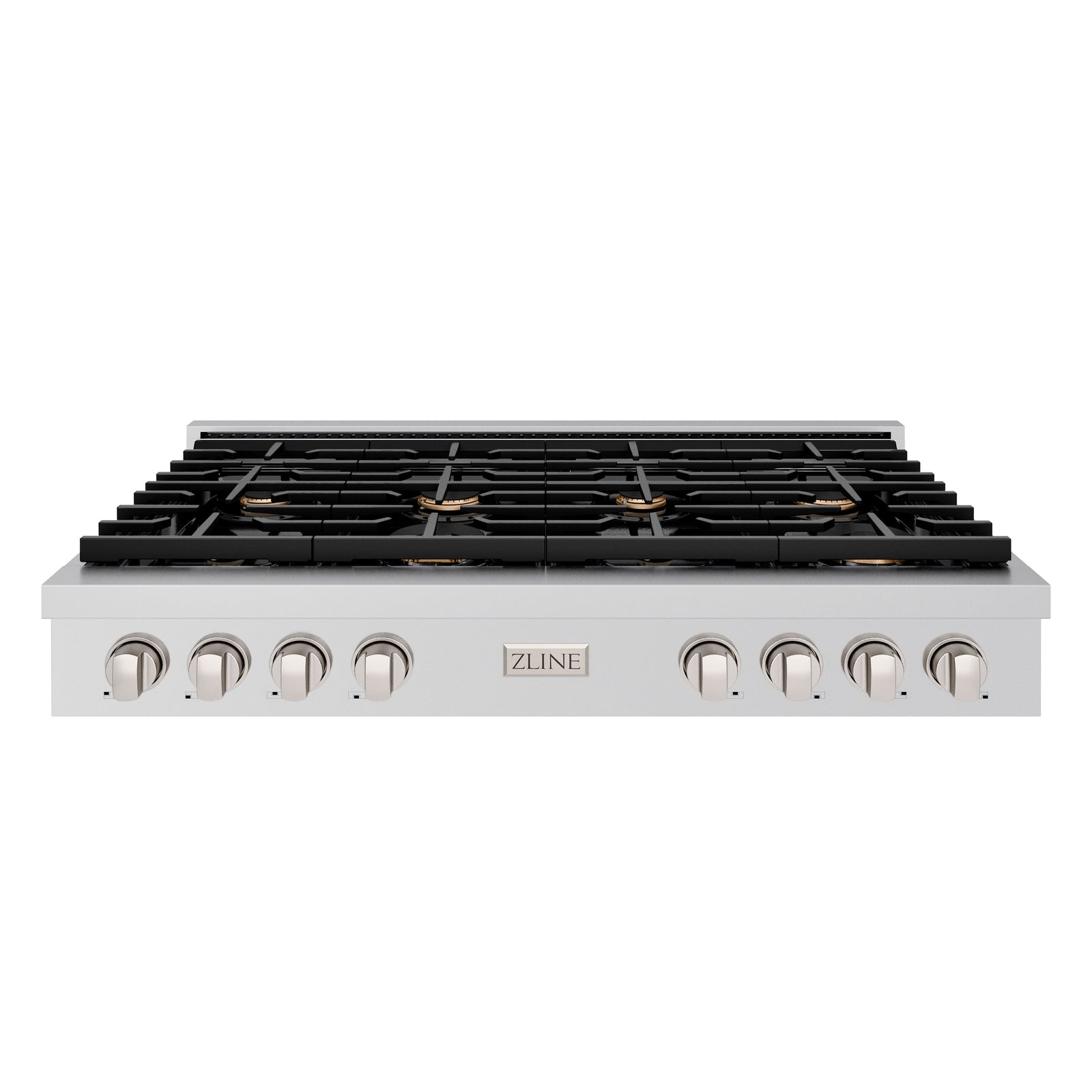 Luxury isn’t meant to be desired - it’s meant to be attainable. The ZLINE 48 in. Paramount Gas Rangetop with 8 Brass Burners and Porcelain Cooktop in Stainless Steel (SRT-BR-48) features 8 Italian-made brass auto-reignition burners, a hand-crafted porcelain cooktop, and enhanced cast iron grates allowing you to master every meal. With a modern, timeless style and refined functionality, ZLINE Paramount Gas Rangetops are masterfully crafted to deliver an elevated culinary experience.
